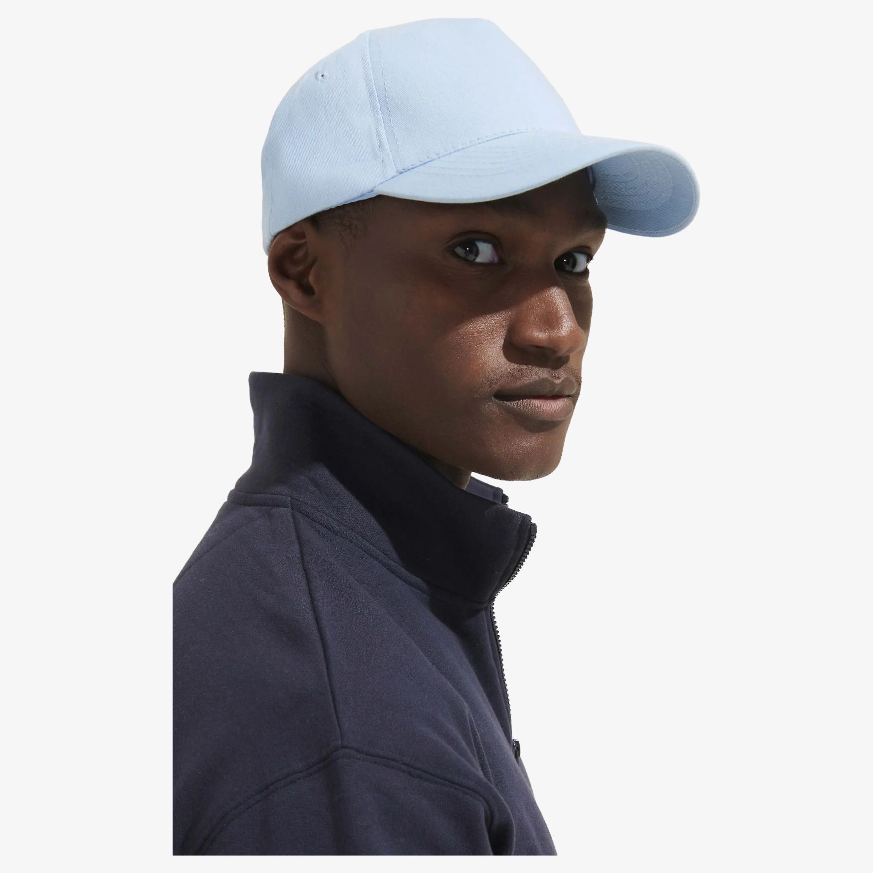 Denne hatte består af fem paneler for en behagelig pasform. Den er fremstillet i let børstet bomuld, som giver en behagelig følelse at have den på. Den preformede visir sikrer effektiv beskyttelse mod solen, mens de fire broderede øjne fremmer ventilationen. Baglåsen kan justeres med et velcro-bånd, så hatte kan tilpasses forskellige hovedstørrelser. Dette tilbehør er velegnet til daglig brug eller under forskellige udendørs aktiviteter.