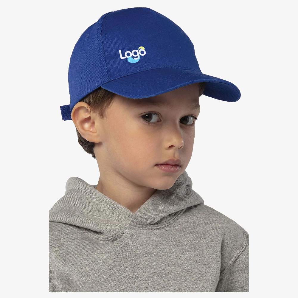 Denne børnehat med fem paneler af let bomuldsstof giver optimal komfort. Den forudformede visir og de fire broderede ventilationsøjne sikrer god ventilation. Bagtilsjustering med selvklæbende bånd giver en perfekt pasform. Denne børnehat er ideel til tilpasning ved brodering, hvilket muliggør tilføjelse af dit logo eller visuel.