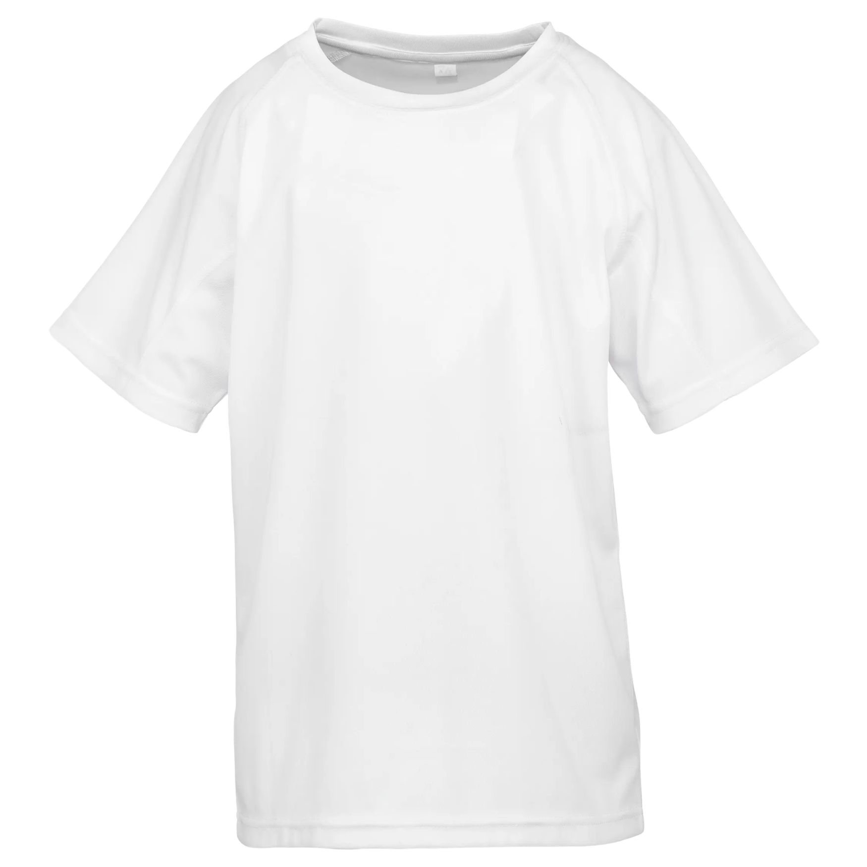 Performance Aircool tee er en tee-shirt til børn i netstrik, designet til lufttørring og en let fornemmelse. Den løse pasform og fraværet af etiket sigter mod en mere komfortabel brug, med sømme på toppen af skuldrene og detaljer på ærmerne.