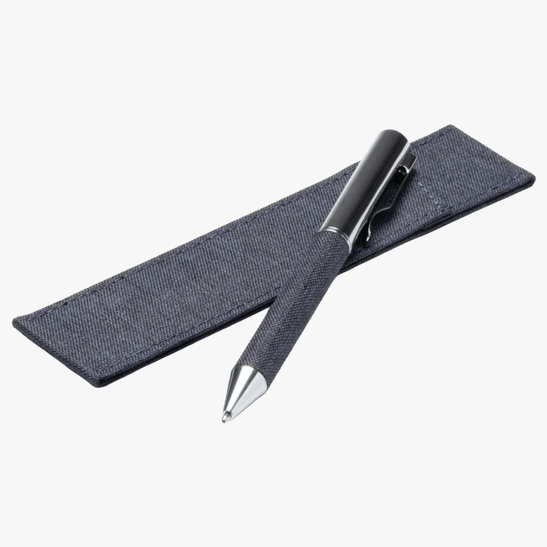Braman drejelig metalkuglepen med blåt blæk. Matchende etui i genanvendt RPET-polyester.