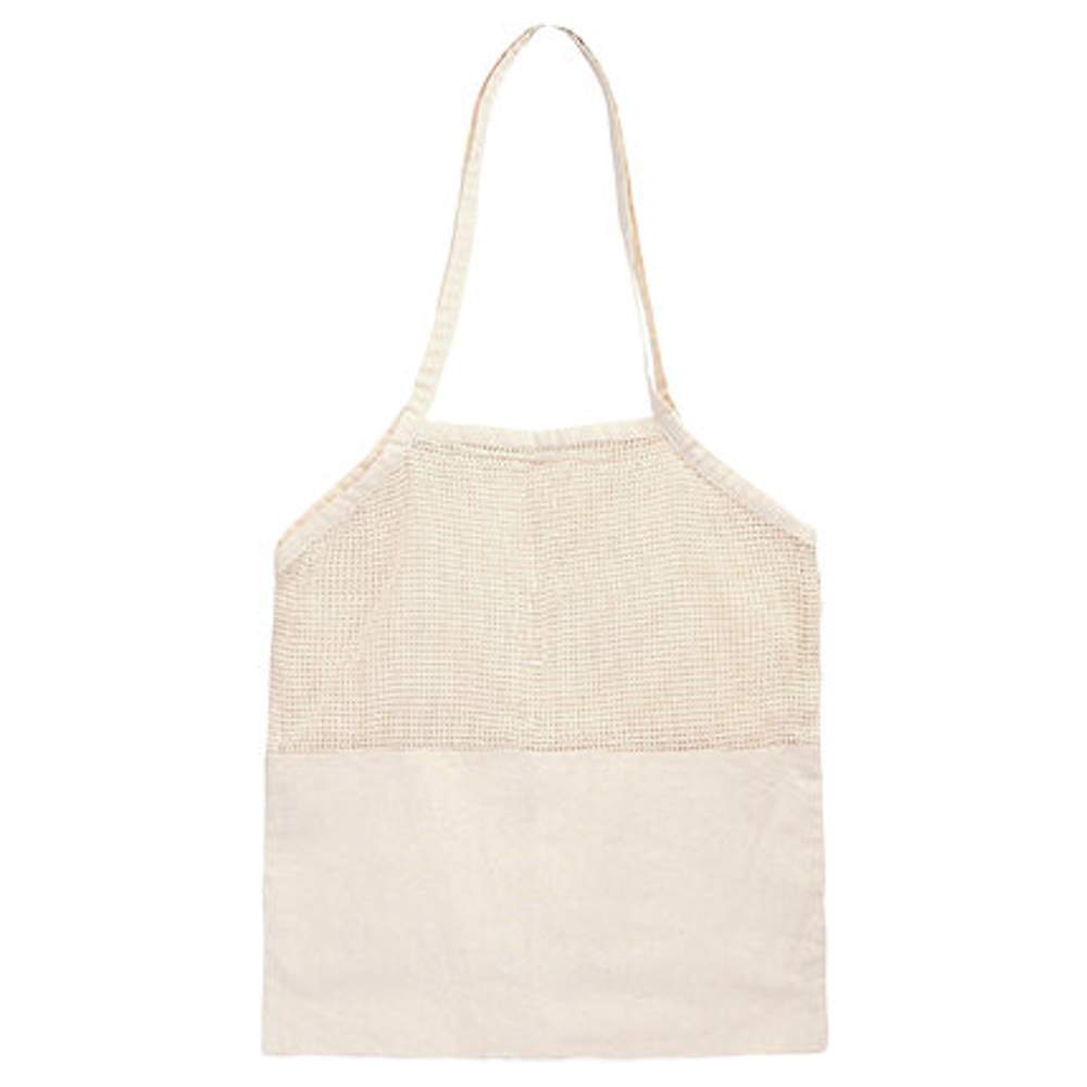 Leaf Indkøbspose i naturligt bomuld, designet til transport af indkøb, frugt eller forskellige ting. Det kombinerer en del af blød stof og en del af net til bedre luftning. Dets størrelser på 45x42 cm tilbyder praktisk opbevaringsplads, mens dets håndtag på 30 cm giver komfortabel bæring. Denne pose er et bæredygtigt og økologisk alternativ til plastposer.
