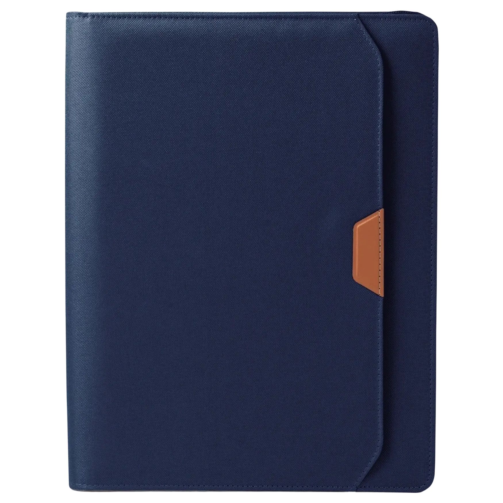 VELIZ A4-konferencemappe i RPET 600D med polyurethanbelægning lukkes med lynlås. Til organisering af dokumenter og tilbehør, med udvendig lomme, indvendige rum, 4 kortlommer og penneholder. Aftagelig notesblok med 20 linjerede ark.