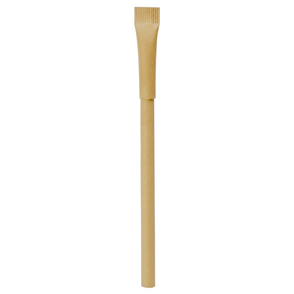 Skrivepenn med hætte fremstillet af genbrugskarton, der tilbyder et bæredygtigt alternativ til skrift. Krop og hætte præsenterer en ensfarvet farve for et simpelt og elegant udseende. Denne pen er designet til at minimere den miljømæssige påvirkning samtidig med at sikre en flydende og behagelig skrivning.