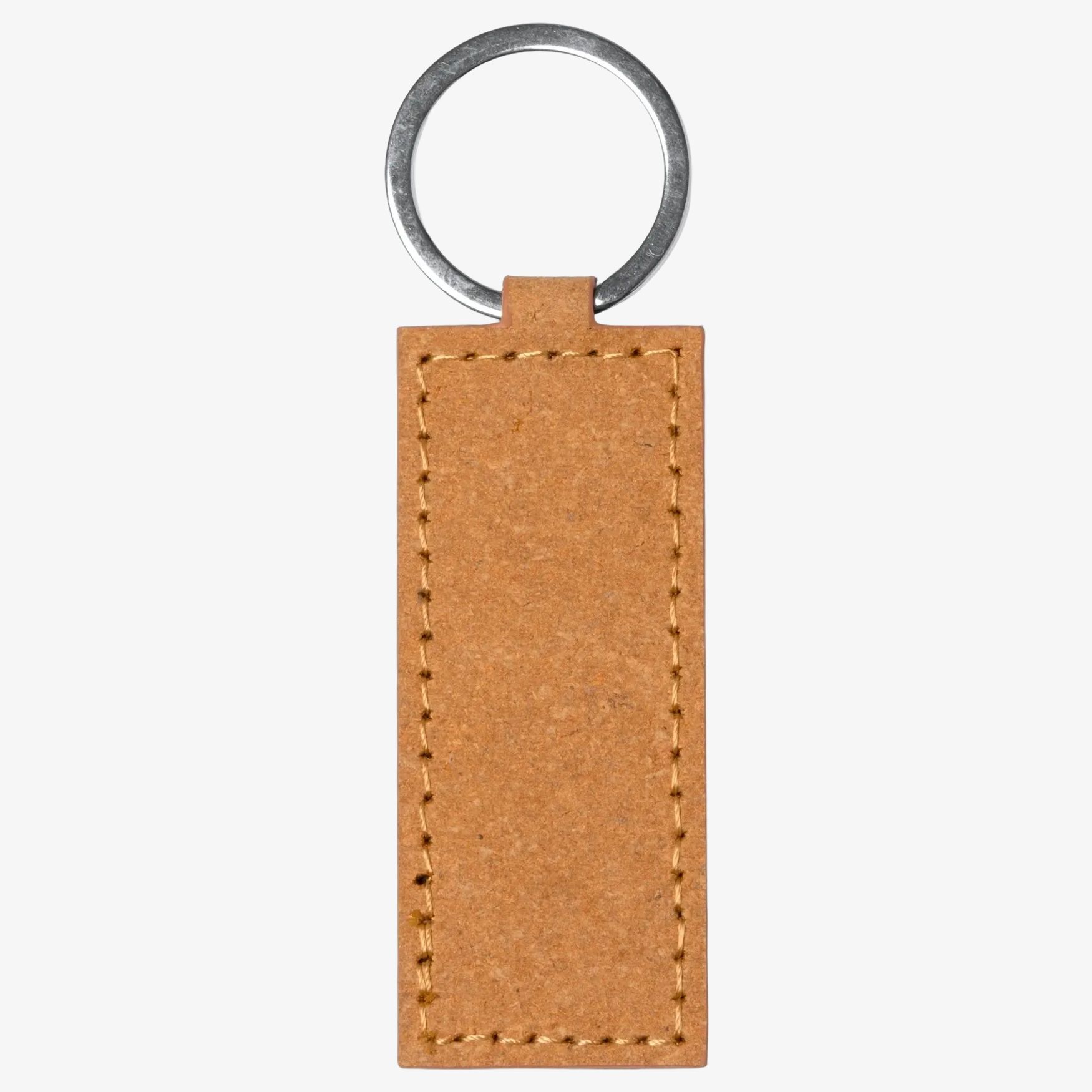 The LUXOR keychain is made of recycled leather with a metal ring allowing attachment of multiple keys. Its rectangular shape facilitates grip and transport.