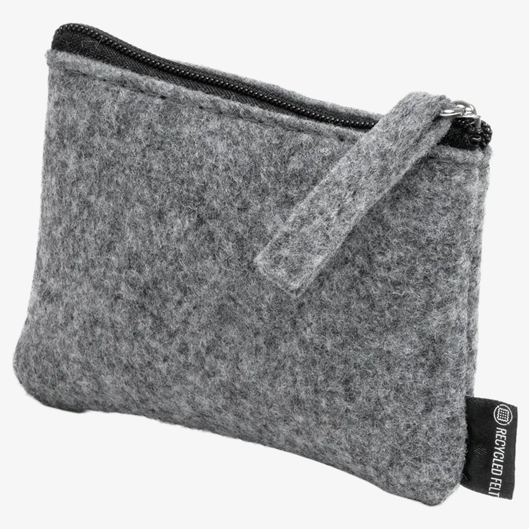 Luton pungen i genanvendt filt er egnet til opbevaring af mønter og små hverdagsgenstande. Det kompakte format gør den nem at transportere, med et håndtag og en lukning til åbning og lukning. Mål: 10,5 x 8 x 0,5 cm.