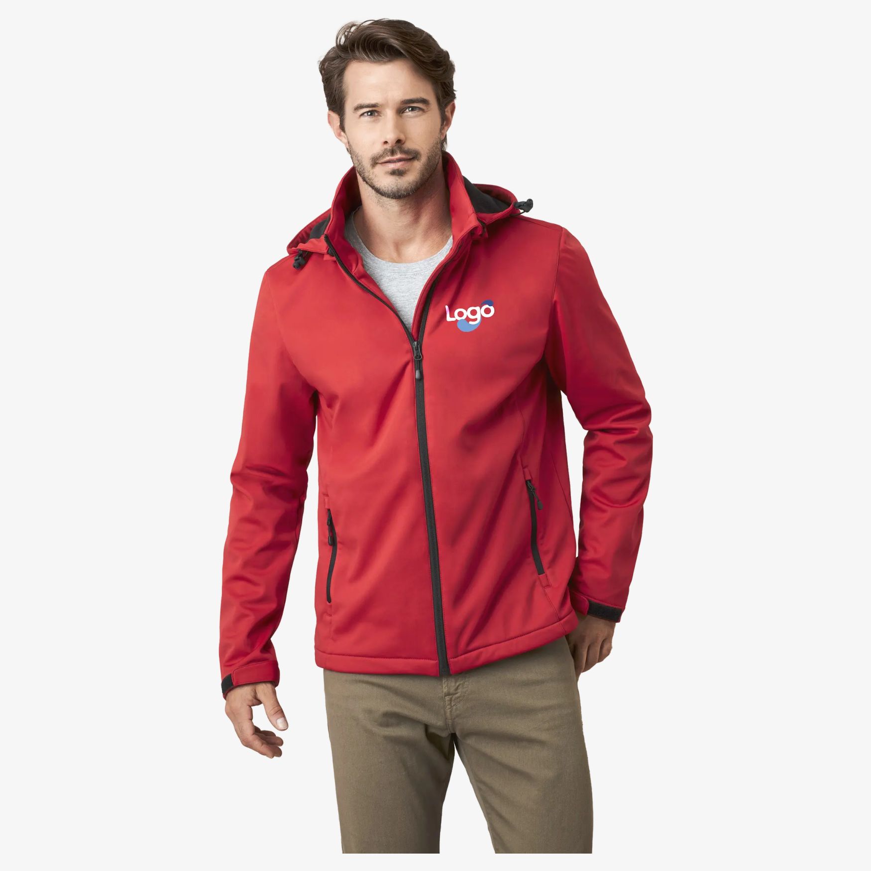 Den lette softshell-jakke til mænd kombinerer varme og åndbarhed gennem et funktionelt 3-lags stof. Den inkluderer en aftagelig, justerbar hætte, justerbare ærmer og flere lynlåslommer.