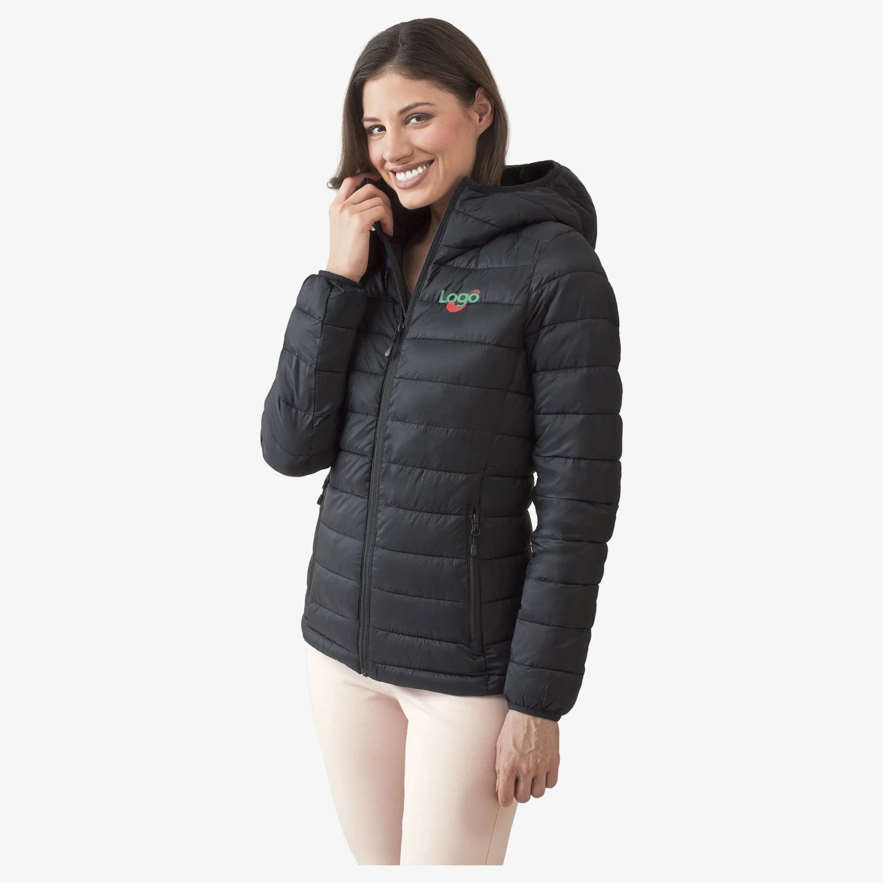 Lux Padded Jacket polstret jakke til kvinder kombinerer lav vægt med passende termisk isolering. Den indeholder en hætte med krave, to sidelommer med lynlås, en højre inderlomme foran og en inderlomme for let adgang til broderiområdet. Den kan foldes sammen i sin egen inderlomme for at spare plads. Taljen kan justeres for bedre pasform.