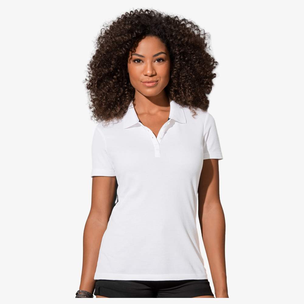Denne kvindepolo er fremstillet af premium bomuld, som giver optimal komfort. Den er tilgængelig i 14 farver. Designet inkluderer en ribbet krave og 5 knapper i samme farve. Ingen mærkeetiket i halsen sikrer øget komfort. De siderimede syer bidrager til en flatterende skæring. En lille størrelsesetiket er diskret placeret i halsen, og en vedligeholdelsesetiket er integreret i den siderimede søm