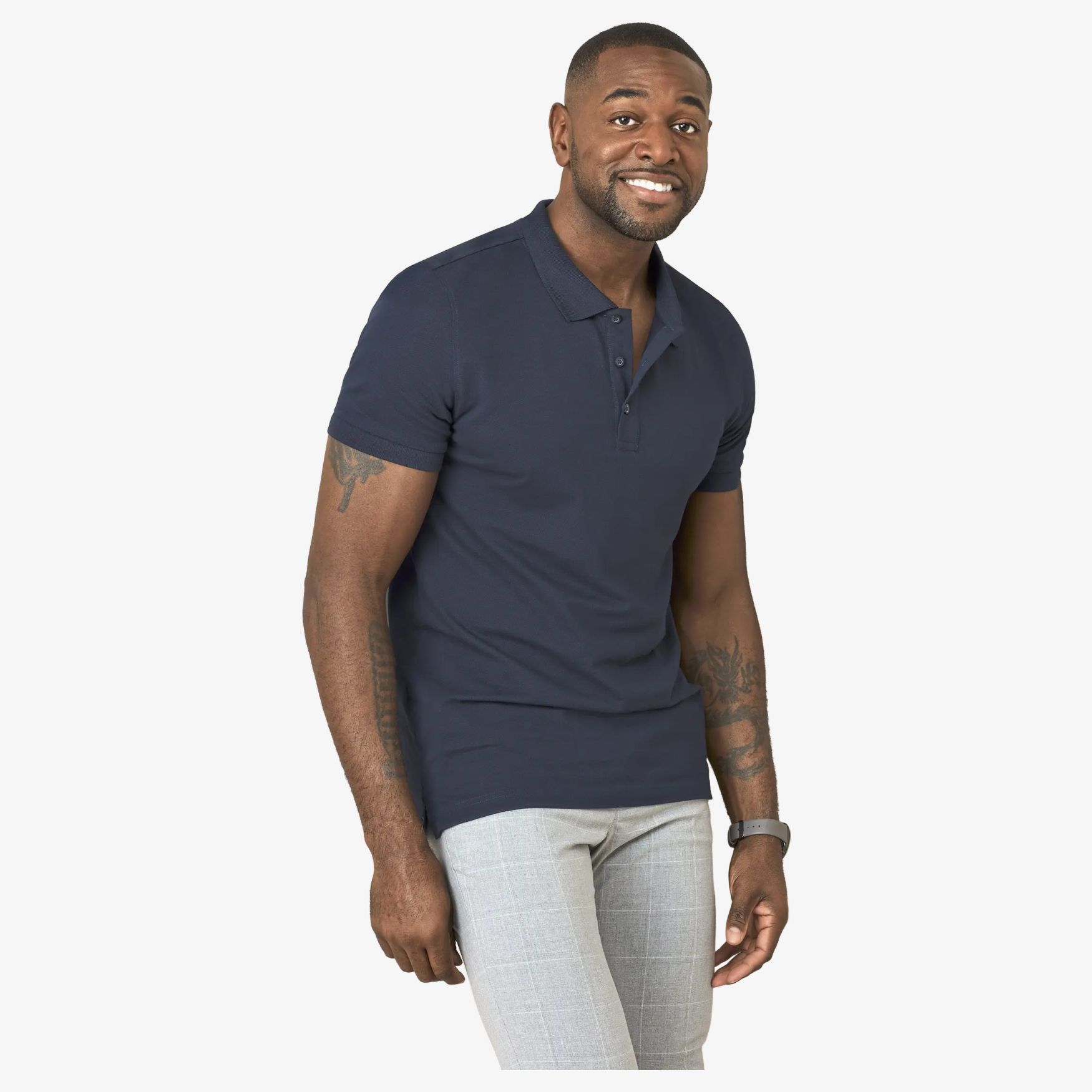 Stretch Polo kombinerer kæmmet bomuld og elastan for en blød og elastisk vaffelstruktur. Den har ribkantet krave og manchetter, tre tone-i-tone knapper og en matchende nakkebånd. Sidelommerne har slidser.