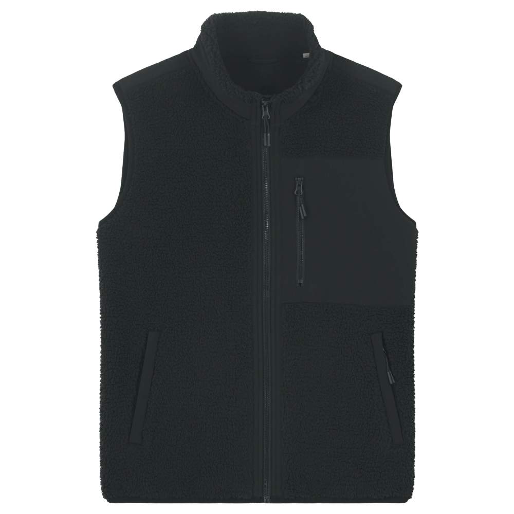 Den unisex uærmede sherpa-jakke tilbyder komfort og stil. Den er udstyret med genbrugte elastiske bænd til manchetter og bundkant, en indvendig bændespænde og et forstærkende bånd på bagsiden af halsen. En Vislon-plastik zip med metaltræk og snorstop er sikret for nem lukning. Den indvendige helt bundne polar-lag giver optimal varme og en anti-pilling-finishing for øget holdbarhed. De kontrasterende softshell-pocher med skjult zip foran tilføjer en stilfuld og funktionel touch. Softshell-stoffet ved lommen, bagsiden og yderhalsen forstærker jakkens æstetik. En skjult zip indeni ved venstre bryst giver nem personliggørelse, især med broderi eller tilføjelse af dit logo. Sammensætning: 100% genbrugt polyester.