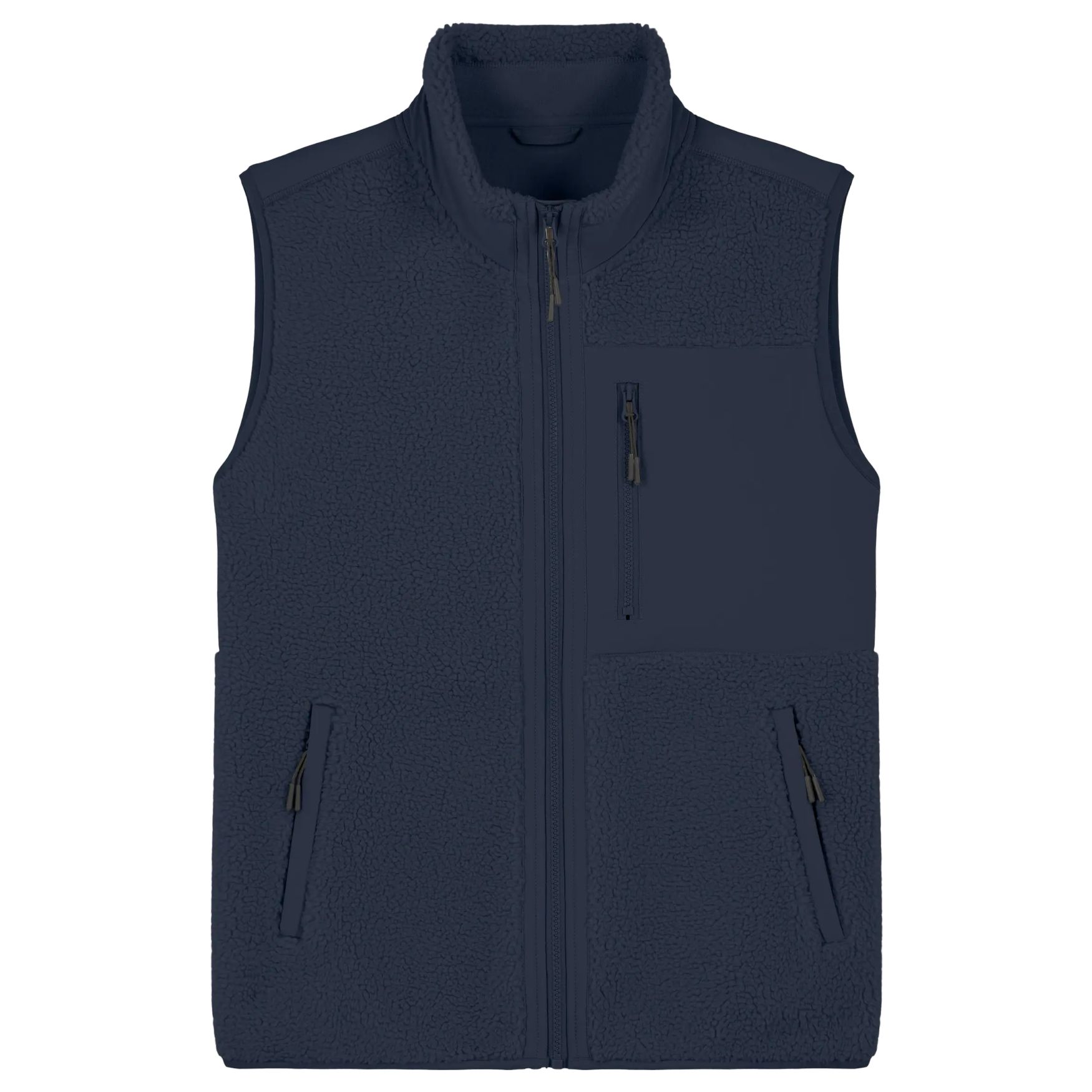 Den unisex uærmede sherpa-jakke tilbyder komfort og stil. Den er udstyret med genbrugte elastiske bænd til manchetter og bundkant, en indvendig bændespænde og et forstærkende bånd på bagsiden af halsen. En Vislon-plastik zip med metaltræk og snorstop er sikret for nem lukning. Den indvendige helt bundne polar-lag giver optimal varme og en anti-pilling-finishing for øget holdbarhed. De kontrasterende softshell-pocher med skjult zip foran tilføjer en stilfuld og funktionel touch. Softshell-stoffet ved lommen, bagsiden og yderhalsen forstærker jakkens æstetik. En skjult zip indeni ved venstre bryst giver nem personliggørelse, især med broderi eller tilføjelse af dit logo. Sammensætning: 100% genbrugt polyester.