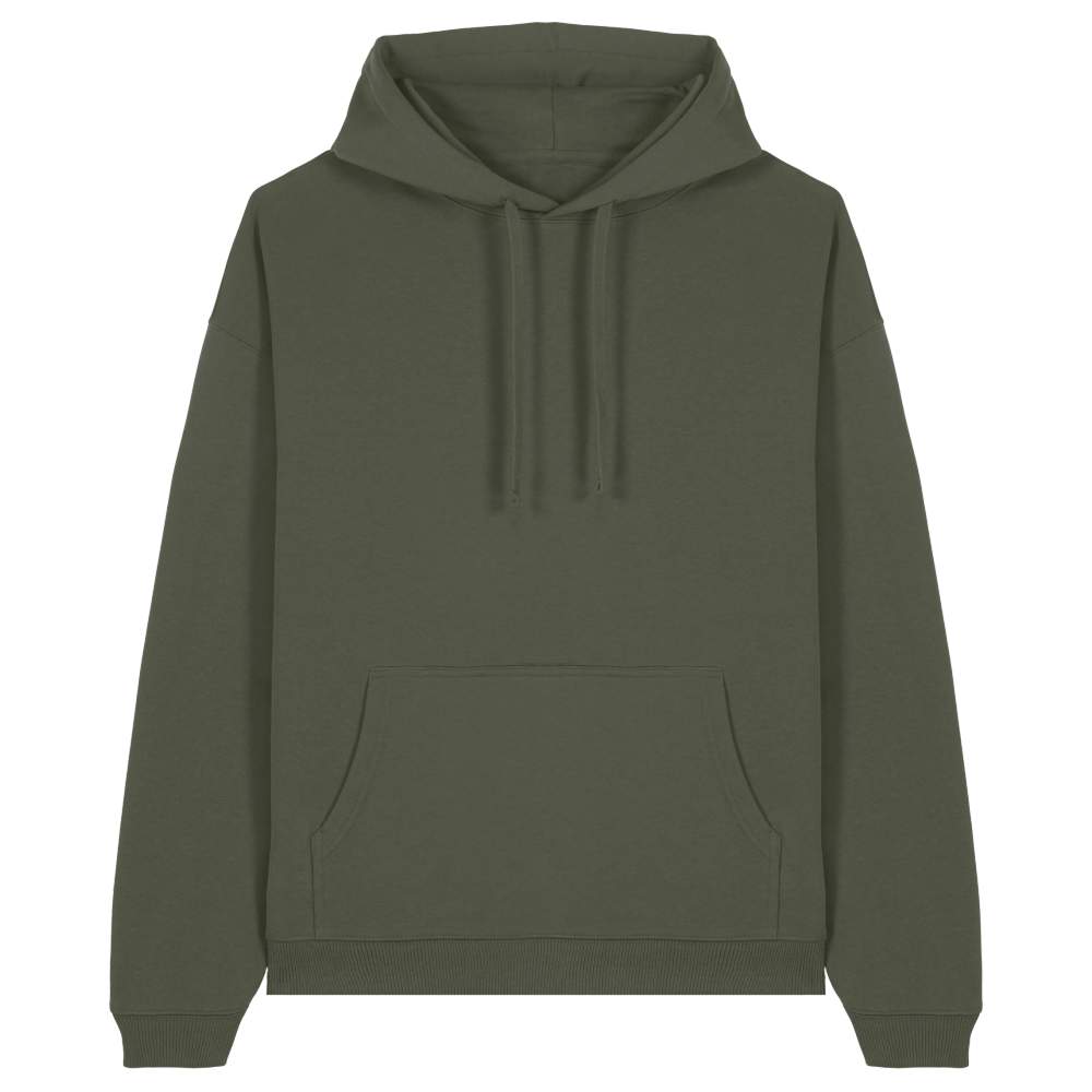 Hoodie sweatshirt oversize Slammer 2.0 tilbyder optimal komfort takket være sin rummelige skæring og kvalitetsmaterialer. Udstyret med monterede ærmer og en capuche med dobbelt lag, er denne sweatshirt designet til at holde. Et fladt snor af samme farve som kroppen tillader justering af capuche, mens broderede øjne tilføjer en touch af raffinement. Dobbeltsøm på alle sømmerne garanterer øget holdbarhed. Ribbed 2x1 på håndled og bunden sikrer en behagelig pasform. En praktisk kanguro-lomme tilbyder ekstra opbevaringsplads. En forstærkende chevron-streg inde i kraven og en halvmåne af stof bagpå nakken forbedrer komfort og holdbarhed. Denne sweatshirt er sammensat af 100% økologisk bomuld spundet og kammet, der tilbyder en blød og behagelig følelse på huden. Mulighed for personalisering med broderi for et unikt og professionelt resultat.
