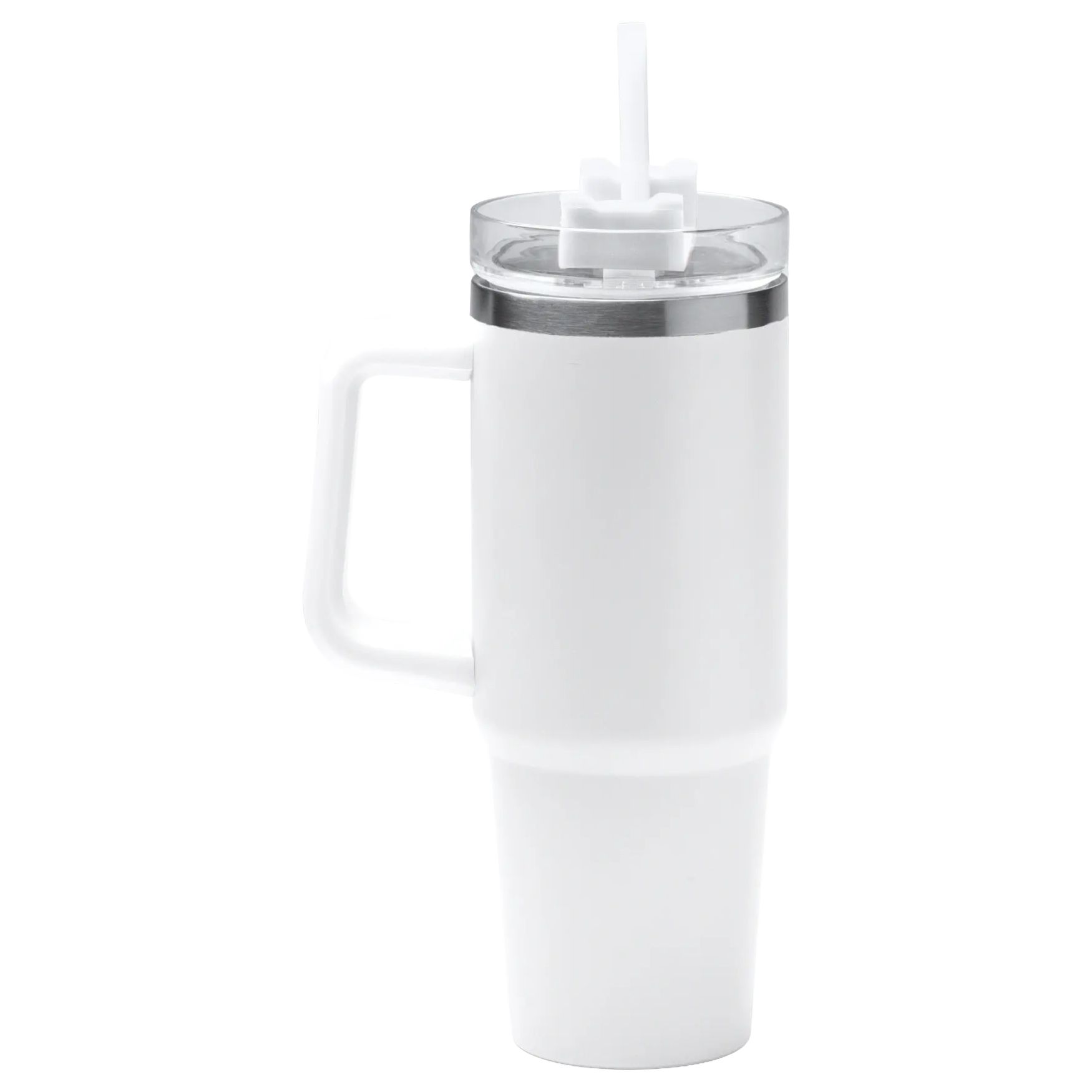 KRANSTON termokrus i genanvendt rustfrit stål 304 med dobbeltvæg holder varme eller kolde drikke i længere tid. Skruelåget reducerer lækager, og sugerøret gør den daglige brug lettere. Kapacitet 870 ml.