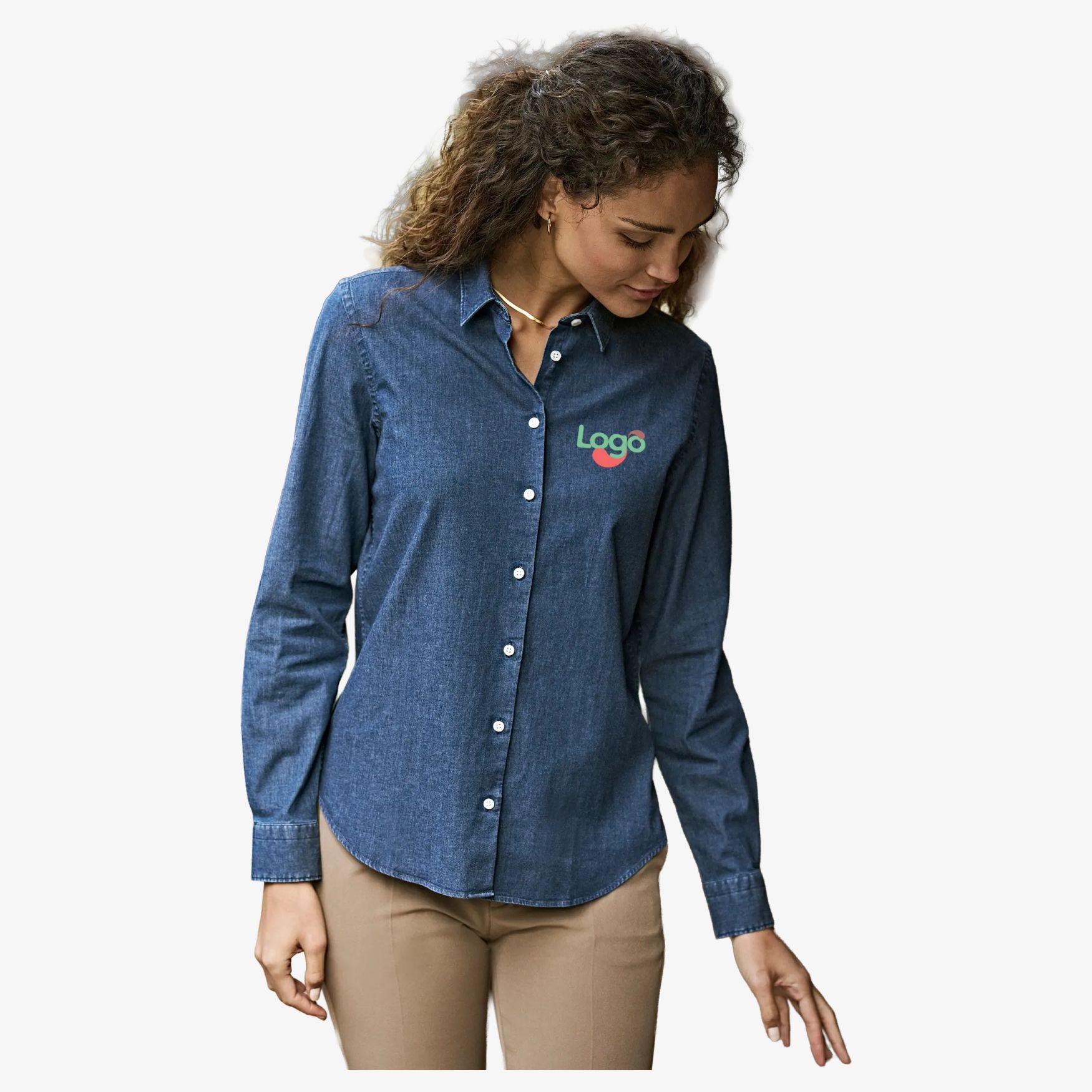 Women s Denim Shirt er en denimskjorte til kvinder med figursyet pasform, designet til daglig brug med en tætsiddende linje og et mere smidigt materiale efter fremstilling. Den har en klassisk krave, moderne manchetter, bærestykke på ryggen og en afrundet kant for behagelig pasform og en struktureret silhuet.