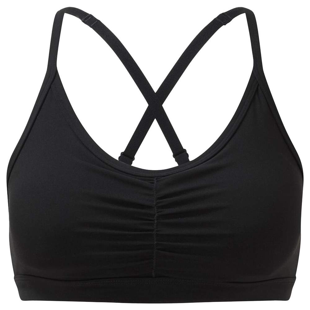 Med sine justerbare stropper og fjernbart indre polstring, tilbyder krøllet sports bh TriDri® en støtte, der passer til dine aktiviteter. Elastik under brystet for bedre støtte. Krøllet forside. Korsede stropper på ryggen med justerere. Indbygget fjernbart polstring. Indlæg på ryggen med central del i mesh til bedre ventilation.