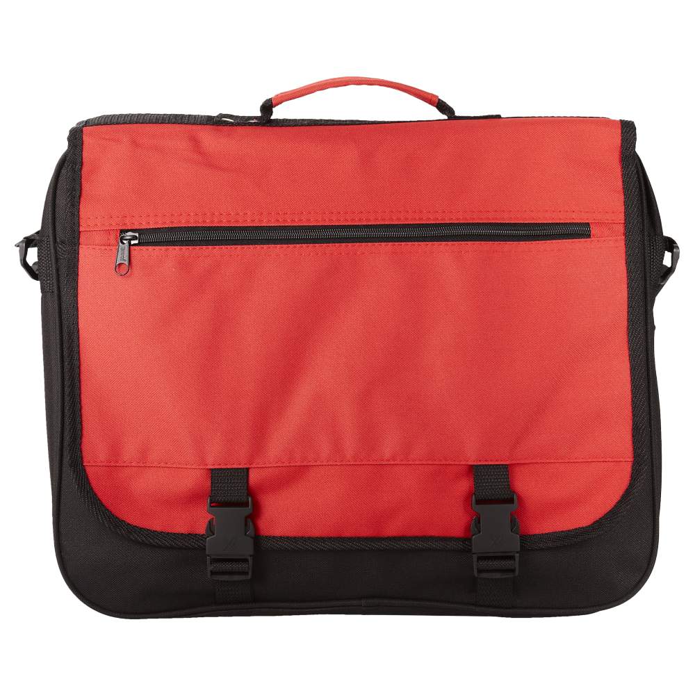 Serviette med justerbar rem, fold med lukning via snor, zipped lomme i folden, hovedkompartment med zip og flere åbne lommer under folden. Dimensioner: 40 x 10 x 33 cm. Sammensætning: 100% polyester.