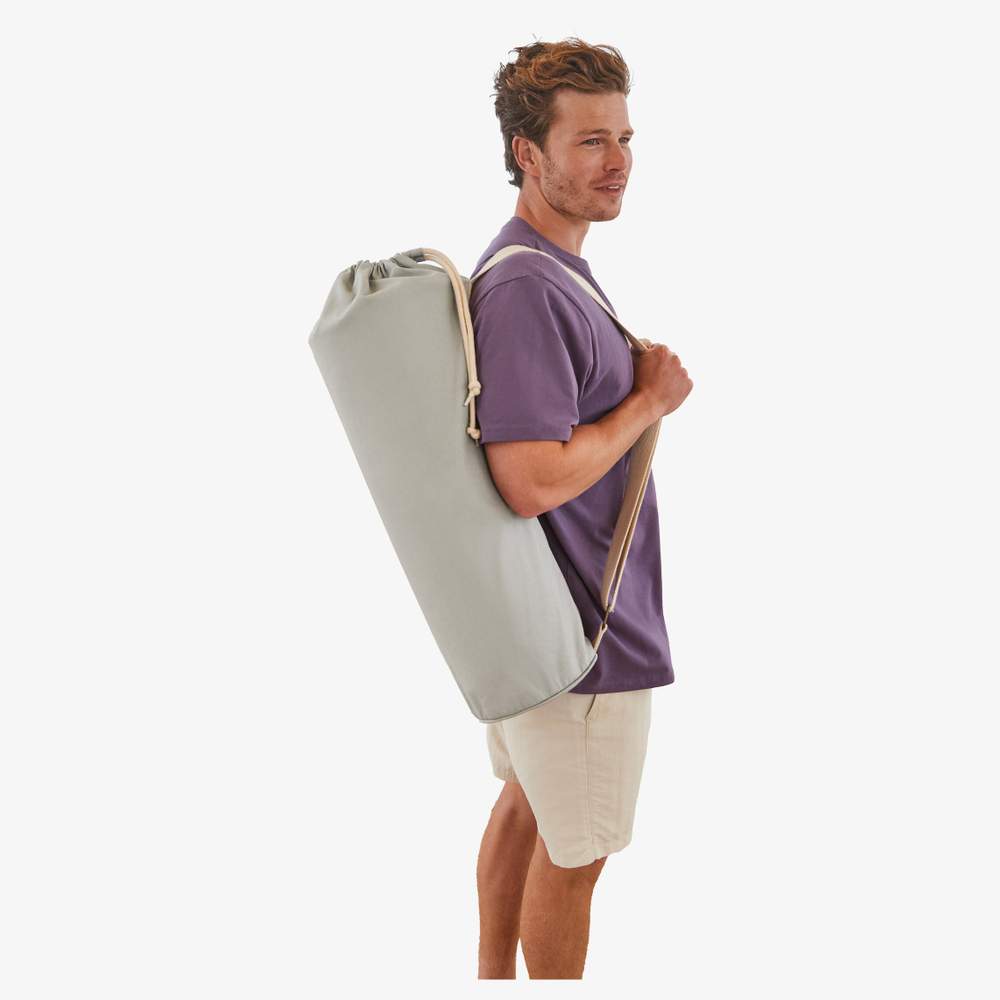 Denne yogamåtte taske er lavet af tyk biologisk bomuld for øget holdbarhed og optimal komfort. Den har en sikker snorlåsning og en justerbar strækbar bånd i lærred til en personlig transport. En skjult zip-lomme giver dig mulighed for at opbevare værdifulde genstande sikkert. Den er ideel til at transportere din yogamåtte og dine tilbehør.