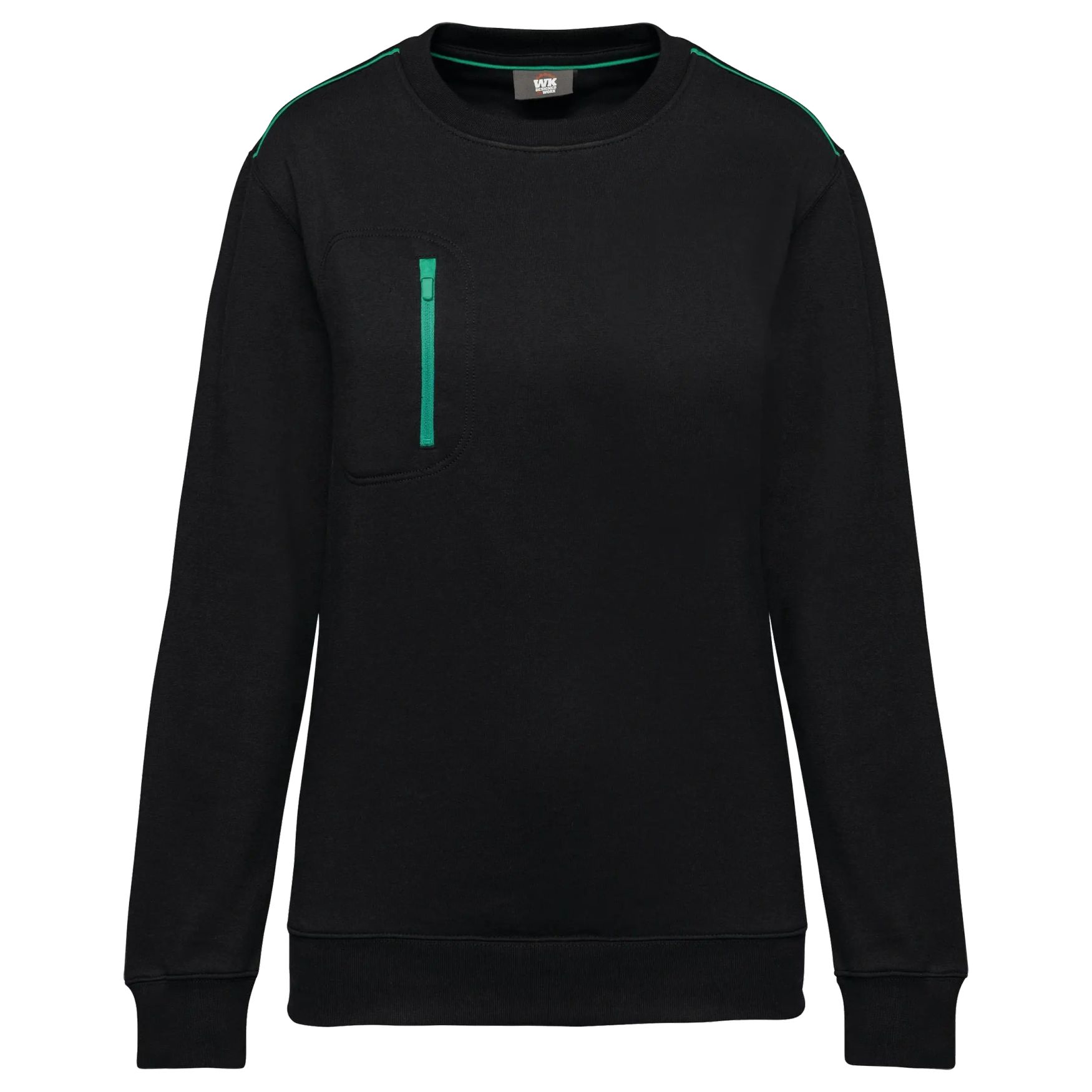 WK403 - Træningstrøje dag til dag zip lomme kontrastfarvet wk403 - black/kelly_green