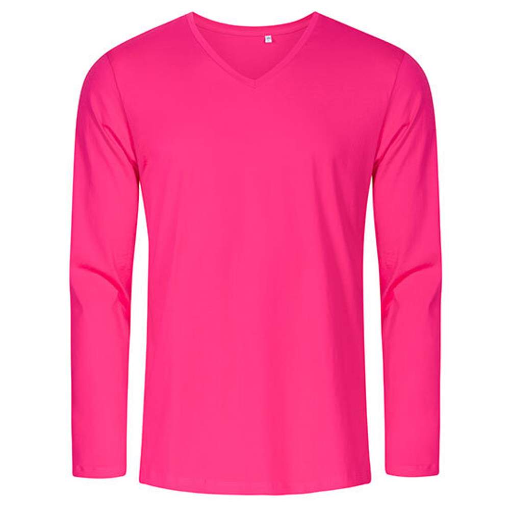 Men's v-neck t-shirt longsleeve 1460 - Bright rose