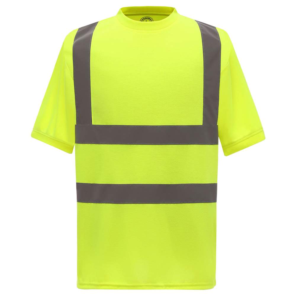 Dette højsynlige t-shirt med korte ærmer er designet til at give optimal komfort og sikkerhed. Fremstillet af 100% polyester, er dette t-shirt blødt at røre ved og holdbart. Det har en krage og ærmelkanter i ribstøvle i samme farve for behagelig pasform. To reflekserende strimler på 5 cm bredde rundt om kroppen og en på hver skulder sikrer øget synlighed under svagt lys.