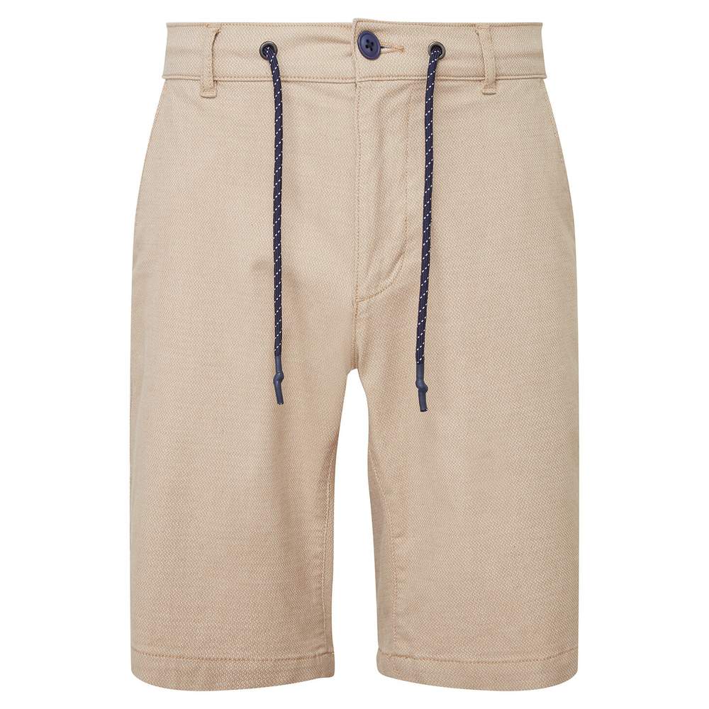 Chino-Short für Herren, entworfen aus Baumwolle und Elasthan für optimalen Komfort. Es verfügt über zwei vordere Klapptaschen und zwei hintere aufgesetzte Taschen. Der Verschluss erfolgt durch einen Reißverschluss und einen Druckknopf vorne. Gürtelösen sind vorhanden, um die Shorts anzupassen. Ein Zugband ist ebenfalls enthalten für einen individuellen Halt.