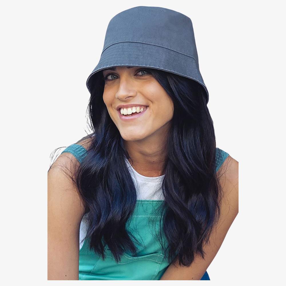 Bob aus Bio-Baumwolle. Dieses Modell hat eine klassische Form mit einem kurzen, steifen Rand, der das Verstauen in einer Tasche erleichtert. Es ist für den täglichen Gebrauch konzipiert und passt zu verschiedenen Kleidungsstilen. Seine Baumwollzusammensetzung bietet angenehmen Tragekomfort. Die beiden Ösen an der Rückseite ermöglichen zusätzliche Belüftung.