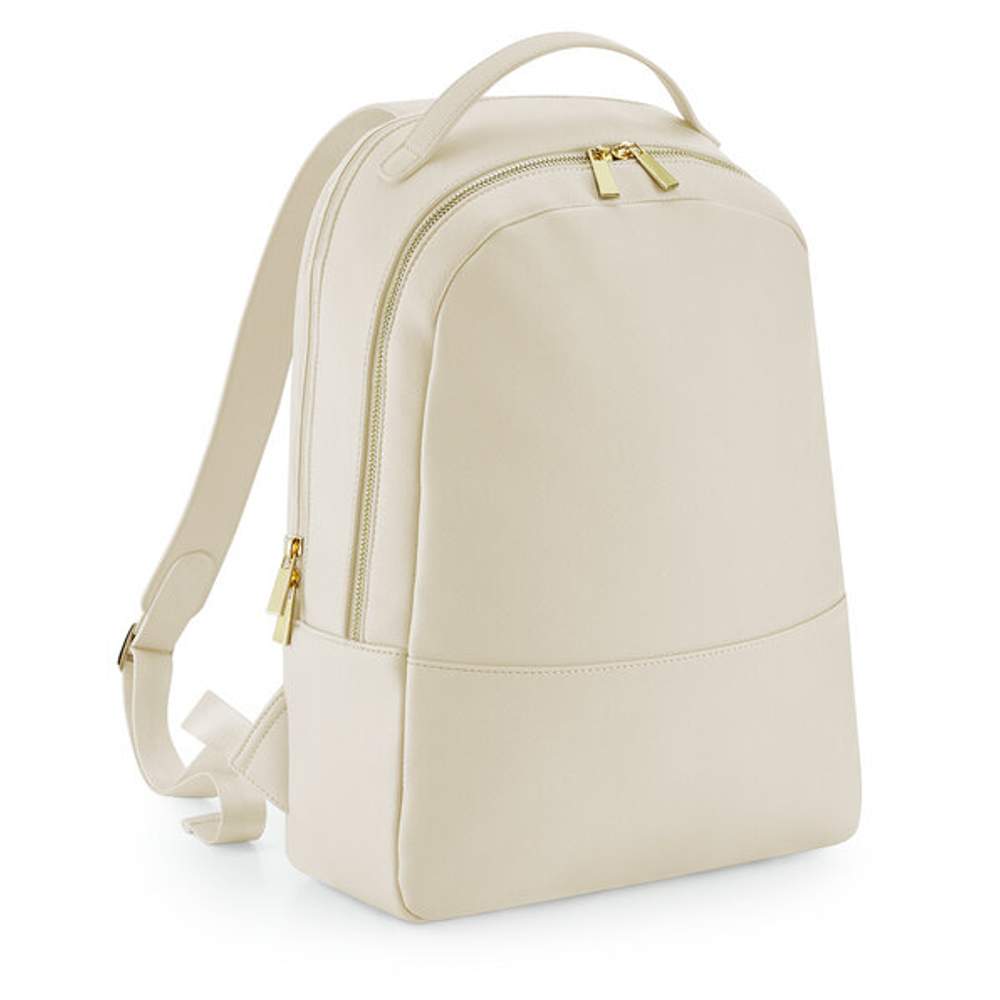 Rucksack aus Polyurethan mit feiner Körnung und einer weichen Auskleidung. Ausgestattet mit Metallzips in Gold, einem Griff und verstellbaren Schulterriemen aus demselben Stoff. Er verfügt über eine Tasche für Rollgepäck, ein Hauptfach mit Reißverschluss, ein gepolstertes Fach für Notebooks bis 14 Zoll, ein internes Organisationsfach und eine Trinkflaschenhalterung. Ein diskretes Reißverschlussfach auf der Rückseite und ein inneres Reißverschlussfach für Wertsachen sind ebenfalls vorhanden. Das abnehmbare Etikett erleichtert das Rebranding. Seine Kapazität beträgt 10 Liter und seine Abmessungen sind 30 x 41 x 11 cm. Er besteht zu 100% aus Polyurethan.