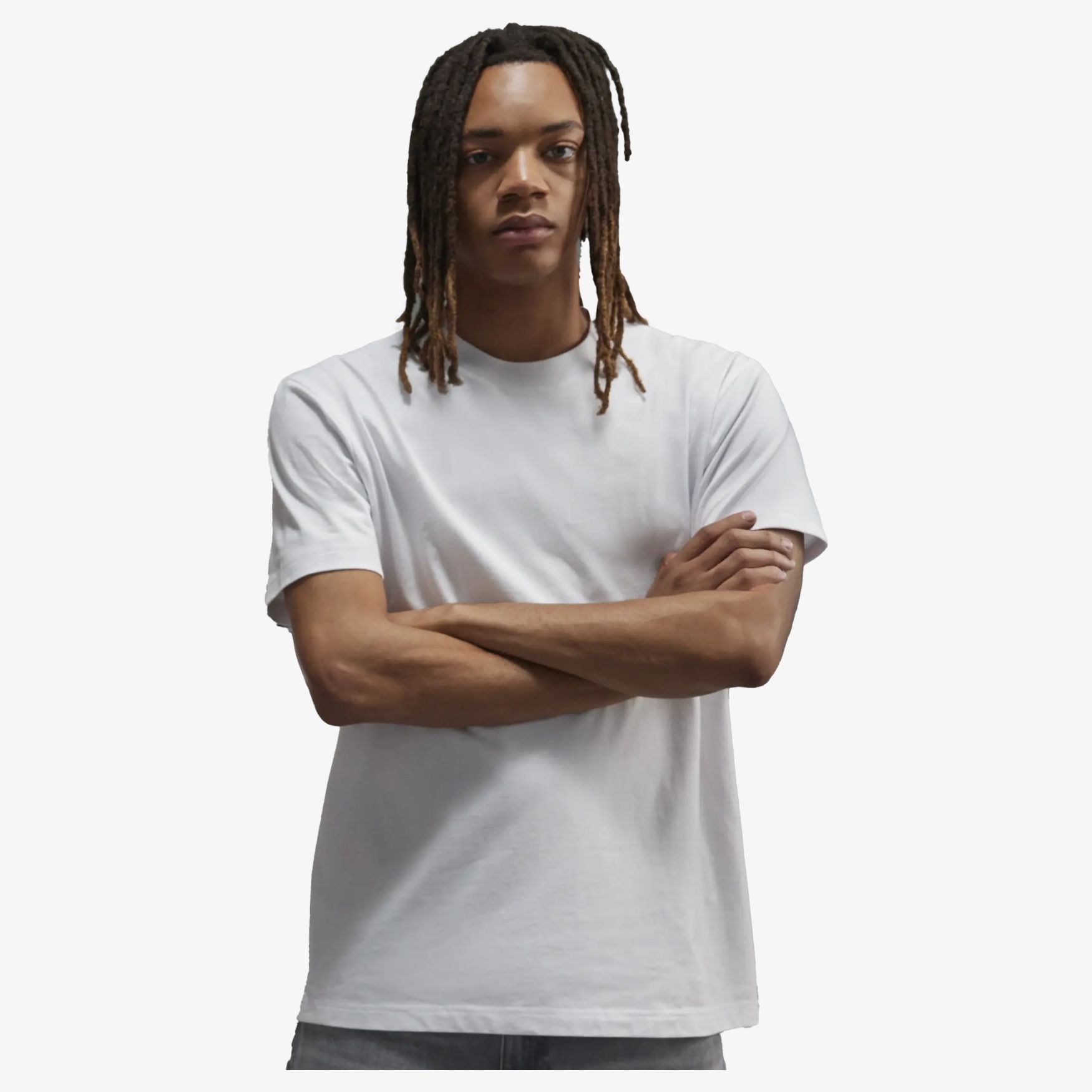 Das E220 tee-shirt aus Single-Jersey, mit Seitennähten und breitem Rippkragen. Ohne Etikett. Zusammensetzung: 100% Baumwolle.