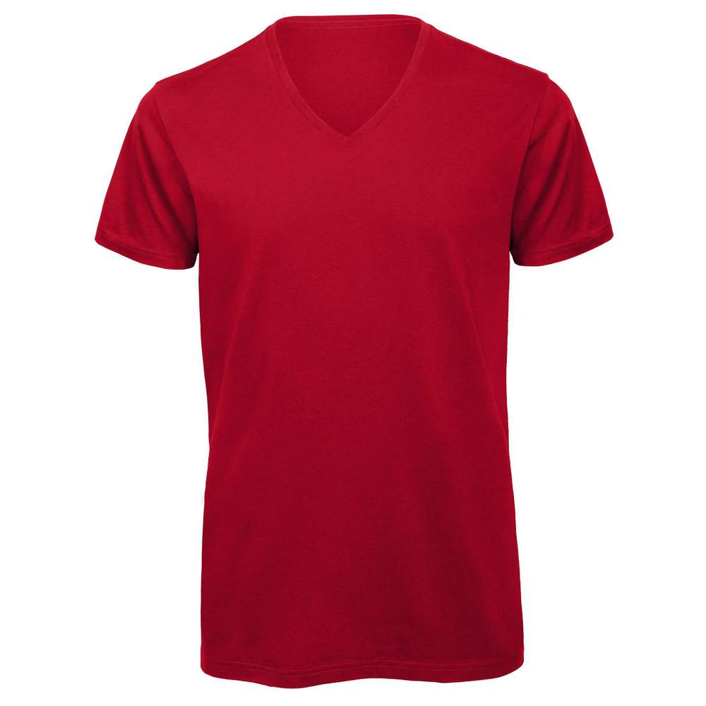 T-Shirt mit V-Ausschnitt. Medium geschnittene Passform. Kurze Ärmel. Seitliche Nähte. Feiner Bündchenkragen. Verstärkung von Schulter zu Schulter. Glatte Oberfläche für einen klaren und präzisen Druck. 100 % gekämmte Baumwolle - zertifiziert biologisch oder in Bio-Umstellung.