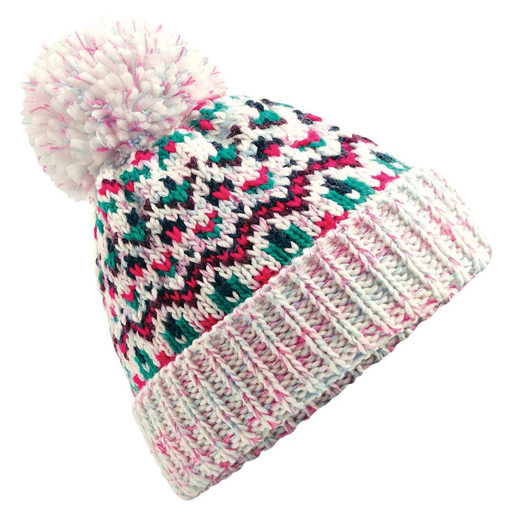 Diese Mütze ist mit einer umklappbaren Struktur für eine optimale Personalisierung gestaltet. Sie ist mit einem einfarbigen Pompon und einem zeitgenössischen geometrischen Muster versehen. Ihre Einheitsgröße ermöglicht einen bequemen Sitz für die meisten Nutzer. Das abnehmbare Etikett bietet zusätzlichen Komfort.
