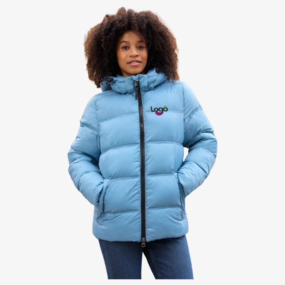 Damen-Winterjacke mit Daunenfüllung aus recyceltem Polyester, die Wärme und Komfort bietet. Das Sugenro-Füllmaterial ist in große Kammern unterteilt für eine optimale Wärmeverteilung. Diese Jacke verfügt über zwei praktische Seitentaschen mit Reißverschluss sowie einen Zweirichtungs-Reißverschluss über die gesamte Länge für mehr Bewegungsfreiheit. Innen befinden sich zwei große Taschen, ideal zum Verstauen Ihrer Utensilien. Die verstellbare Kapuze mit Reißverschluss bietet zusätzlichen Schutz vor den Elementen. Dreifache Nähte gewährleisten eine erhöhte Haltbarkeit, während die elastischen Innenmanschetten einen komfortablen Sitz bieten. Diese Jacke ist für eine einfache Personalisierung durch Stickerei konzipiert, sodass Sie Ihr Logo oder Ihr einzigartiges Design hinzufügen können.