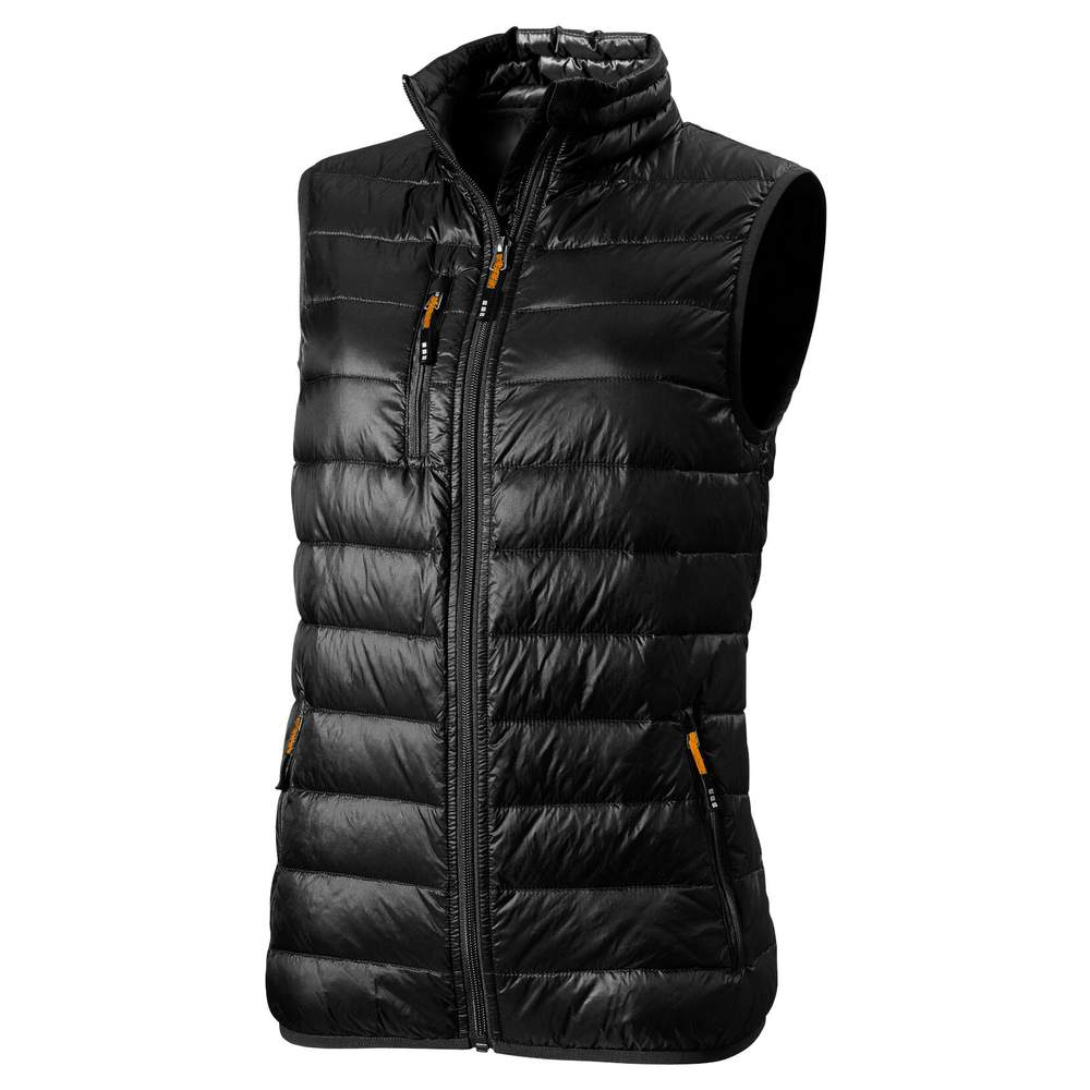 Leichter Daunenbodywarmer für Frauen. Dieses Modell bietet durch seine Füllung aus Daunen und Federn eine thermische Isolation. Der enge Schnitt sorgt für optimalen Komfort. Innenliegender Windabweiser mit Kinnschutz. Taschen für die Hände mit Reißverschlüssen. Elastische Bündchen. Vorderseitiger Metallreißverschluss mit Kontrastband.