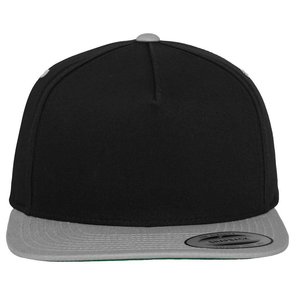 5-Panel-Snapback-Kappe, klassische Form. Vorderteil starr. Untervisier grün. Verschluss mit Druckknöpfen aus Plastik, Metallösen, Visier und Knöpfen, die einen Kontrast bilden. Geeignet für Siebdruck und Stickerei für eine effektive Personalisierung. Zusammensetzung: 100% Baumwolle.