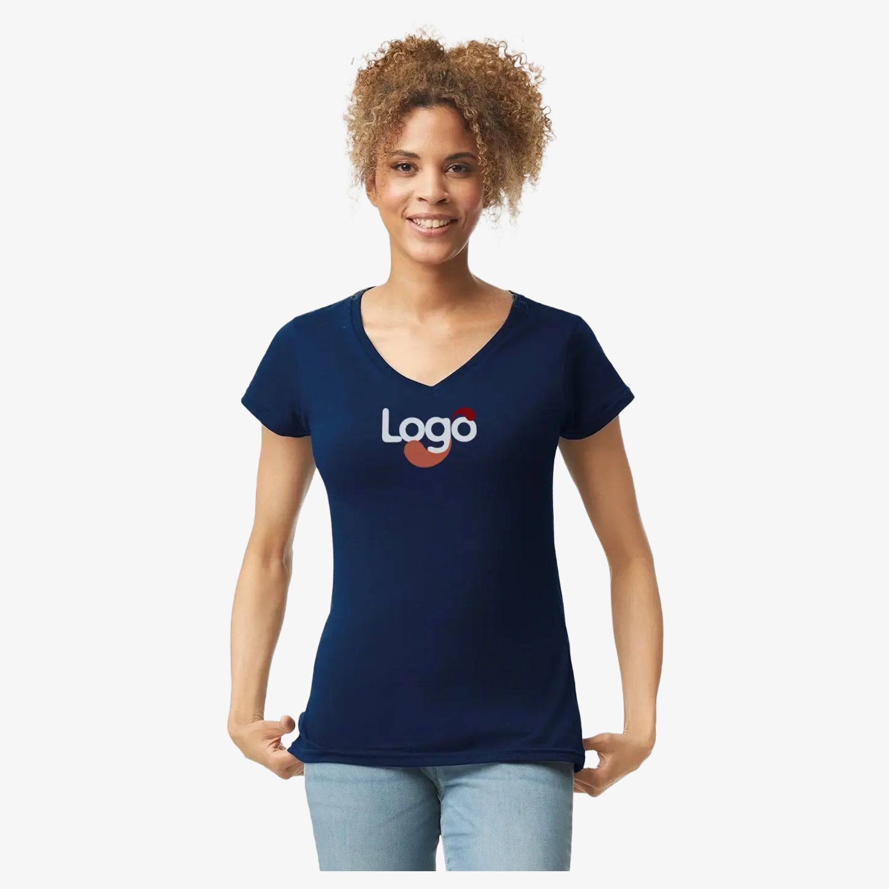 64V00L - Damen V-Ausschnitt T-Shirt Baumwolle Polyester Personalisierung 64v00l - navy