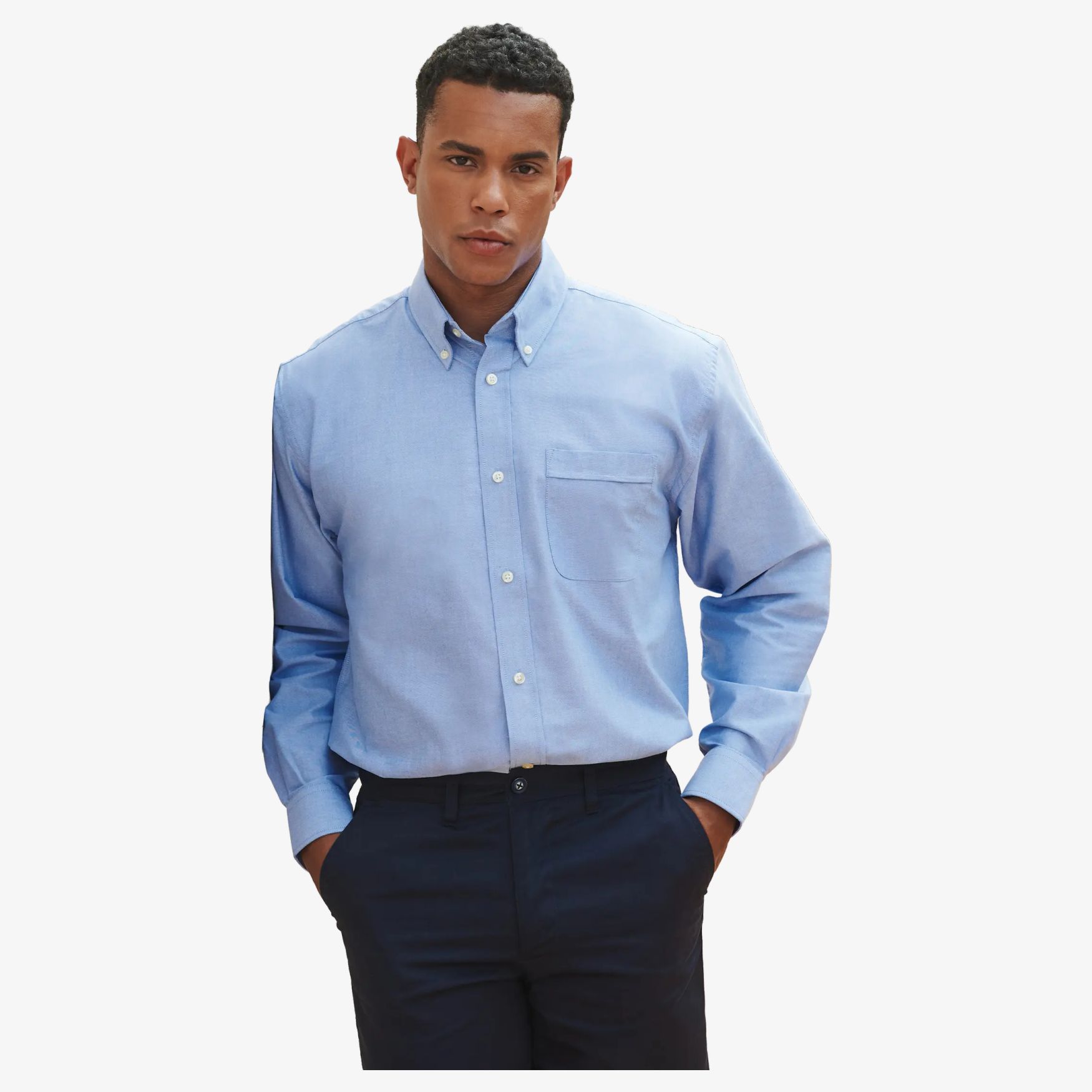 Dieses Langarmhemd ist aus Baumwolle Polyester Oxford hergestellt, was ein Gleichgewicht zwischen Komfort und Haltbarkeit bietet. Die knitterfreie Behandlung erleichtert die Pflege des Kleidungsstücks und reduziert den Bedarf an Bügeln. Das Hemd weist einen Rückenfalz für eine gepflegte Struktur auf. Es ist für den täglichen Gebrauch in beruflicher oder privater Umgebung konzipiert. Sein klassischer Schnitt bietet den ganzen Tag über optimalen Komfort.