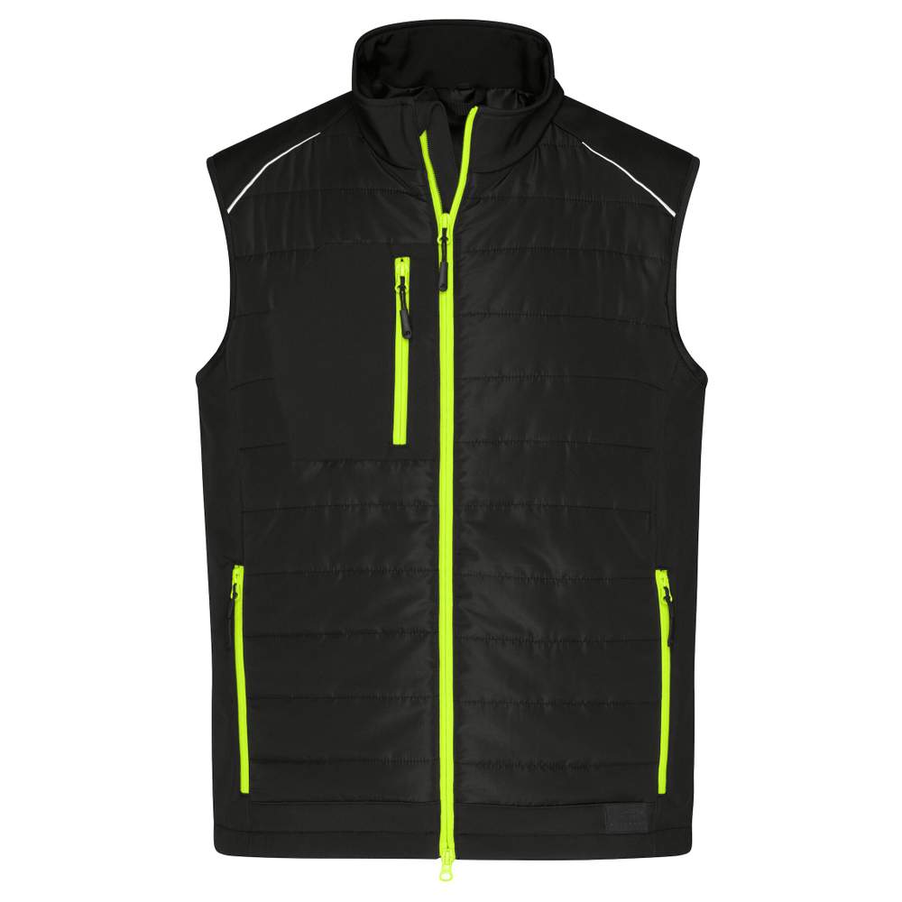 JN1822 - Herren Hybrid Gilet Ärmellose Softshell-Weste mit Ihrem Design personalisierbar jn1822 - black/neon_yellow