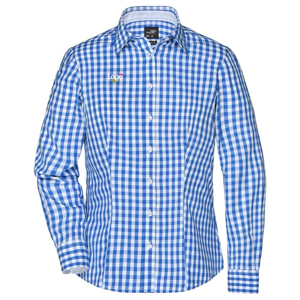 JN616 - Ladies Karomuster Bluse Chemise coton jn616 personalisiert - royal/white