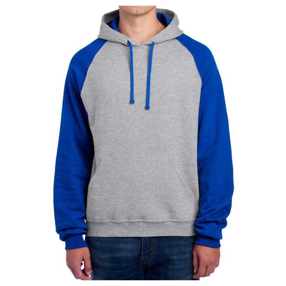 Dieser NuBlend® vorgewaschene und antipelzige Sweater bietet eine bequeme und dauerhafte Grundlage. Sein Farbblockdesign verleiht ihm einen sportlichen Touch. Er wird aus nachhaltig angebauter Baumwolle aus den USA gefertigt. Die hohe Punktezahl sorgt für eine glatte Oberfläche zum Bedrucken. Dieses Modell verfügt über lange Raglanärmel, eine doppellagige Kapuze mit Ösen, einen gestickten Halsausschnitt vorne und eine mittlere Tasche. Die Bündchen und der Bund in 1x1 Rippenstrick bieten einen bequemen Sitz. Die doppelten Nähte an den Ärmelabschlüssen und dem Bund erhöhen die Haltbarkeit. Das abnehmbare Etikett ermöglicht eine einfache Personalisierung.
