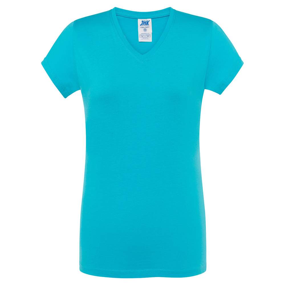 Dieses Damen-T-Shirt präsentiert eine taillierte Passform und einen klassischen V-Ausschnitt. Es ist aus 100% Baumwolle für optimalen Komfort gefertigt. Das abnehmbare Etikett ermöglicht eine einfache Personalisierung. Das Kleidungsstück ist für den täglichen Gebrauch geeignet und bietet eine gute Bewegungsfreiheit. Seine einfache Konzeption macht es zu einem vielseitigen Artikel für verschiedene Gelegenheiten.