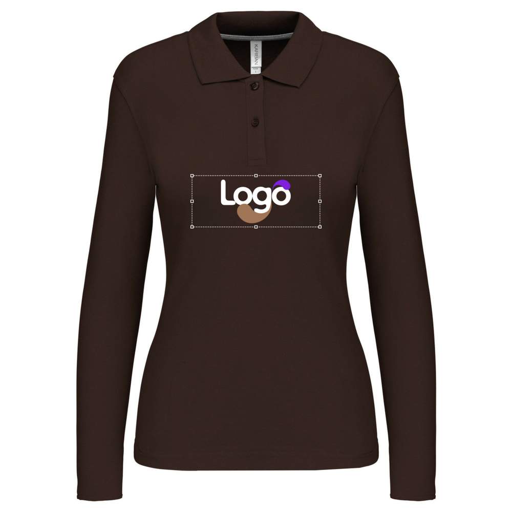 Langarm-Polo für Damen k244 Personalisierung - Chocolate