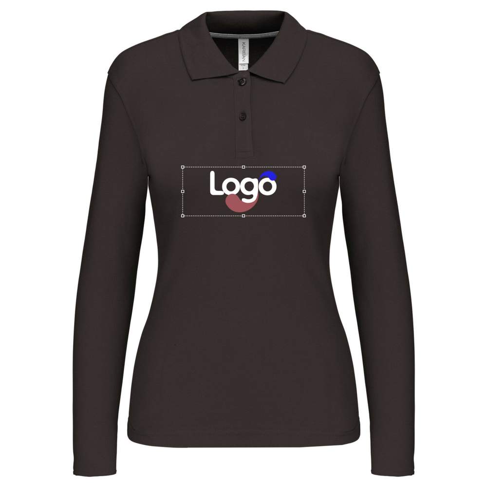 K244 - Langarm-Polo für Damen k244 Personalisierung - chocolate
