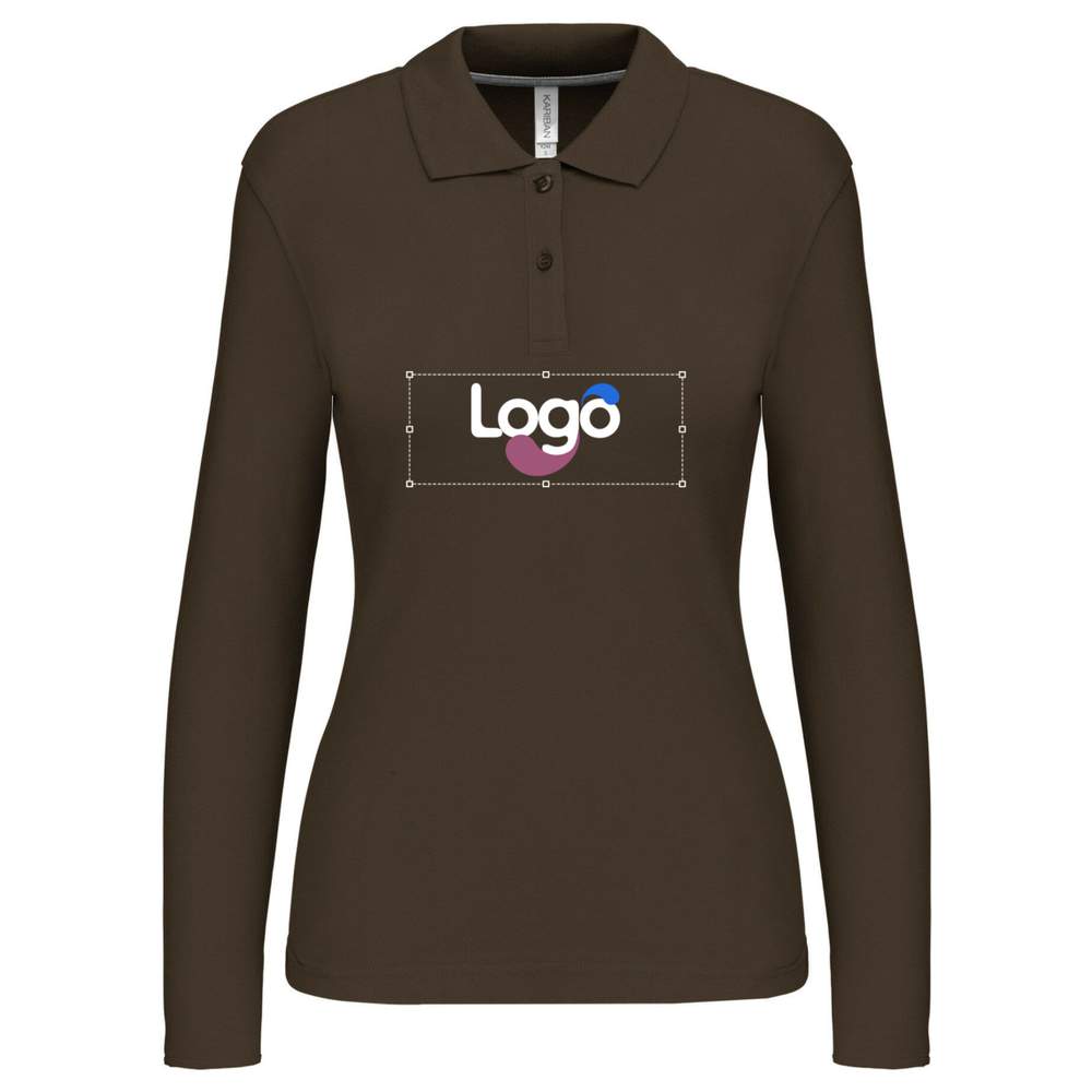 K244 - Langarm-Polo für Damen k244 Personalisierung - chocolate
