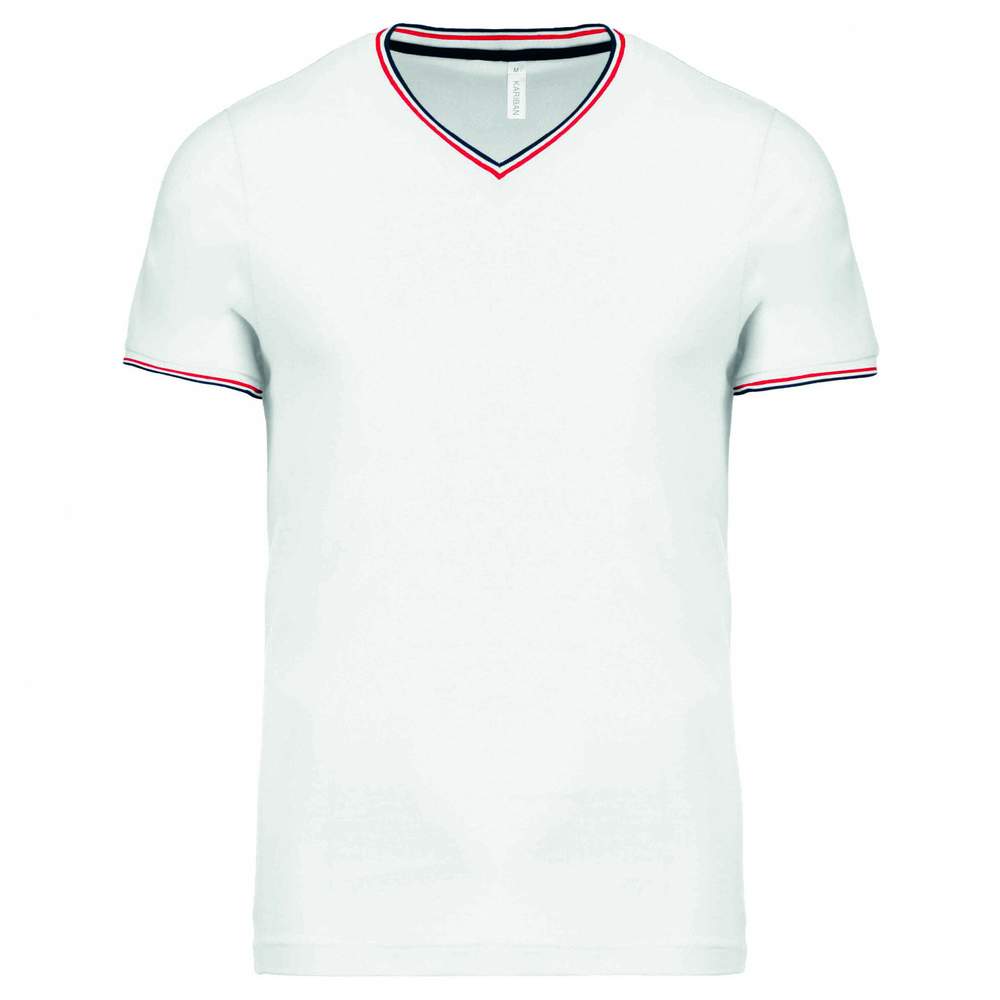 K374 - T-Shirt Strickmuster V-Ausschnitt Mann k374 - white/navy/red