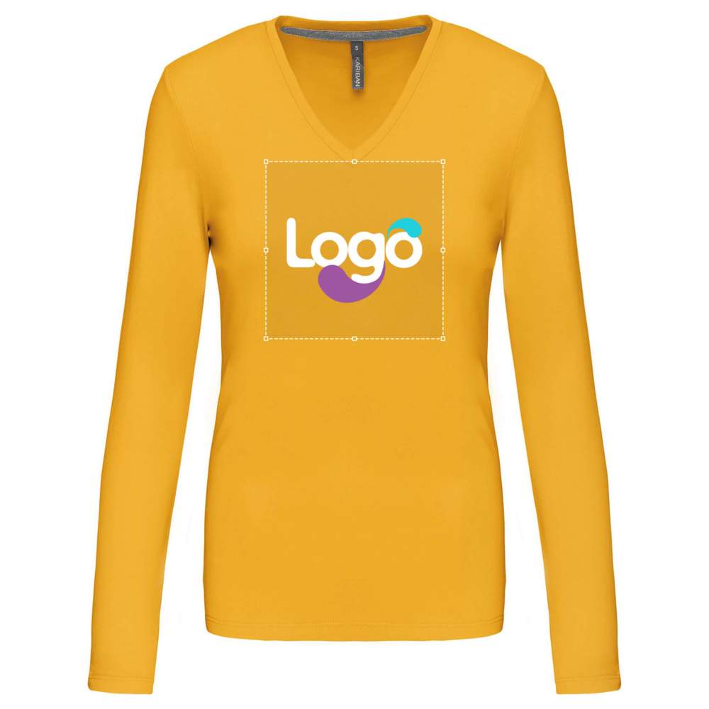T-Shirt mit V-Ausschnitt und langen Ärmeln für Damen k382 Personalisierung
