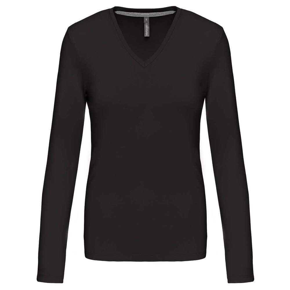 K382 - T-Shirt mit V-Ausschnitt und langen Ärmeln für Frauen k382 - black