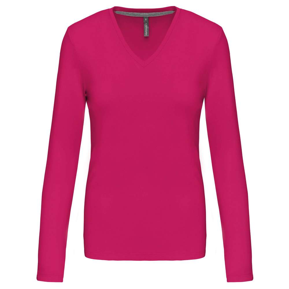 T-Shirt mit V-Ausschnitt und langen Ärmeln für Frauen k382 - Fuchsia