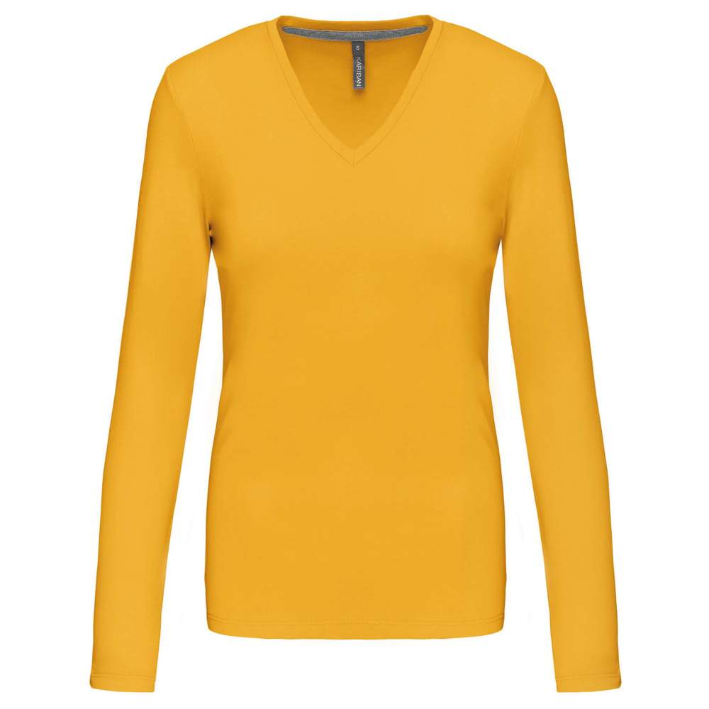 K382 - T-Shirt mit V-Ausschnitt und langen Ärmeln für Frauen k382 - yellow