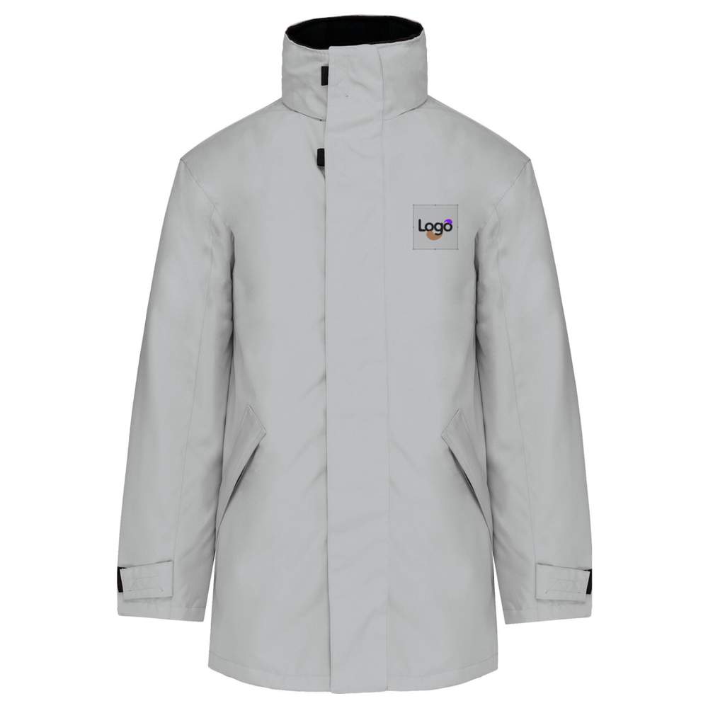 Gefütterte Parka aus Polyester Oxford, die Komfort und Schutz bietet. Mit Reißverschluss, Klettverschlussklappe und verdeckten Knöpfen. Sie verfügt über 2 außenliegende Reißverschlusstaschen, 2 Innentaschen und eine Tasche für ein Mobiltelefon. Die integrierte Kapuze im Kragen und der gefütterte Polarkragen bieten zusätzlichen Schutz. Ein innenliegender Reißverschluss ermöglicht eine einfache Personalisierung durch Stickerei oder Druck Ihres Logos.