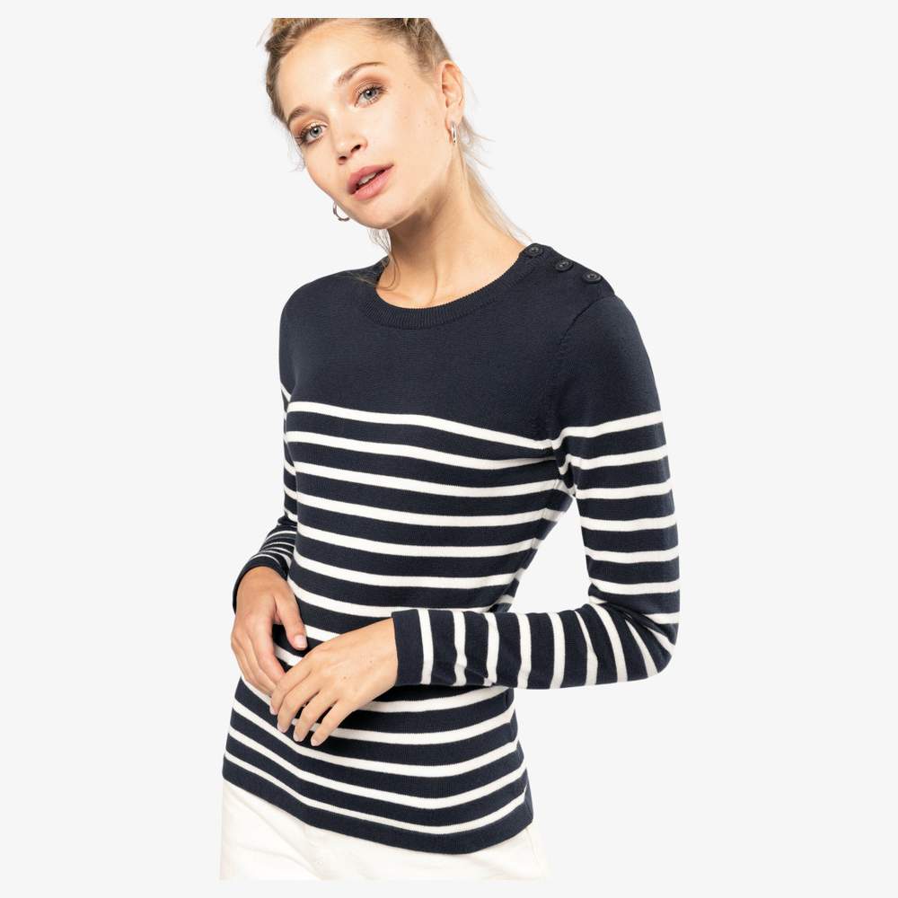 K990 - Marinipullover für Frauen Baumwollgestrickter Pullover mit Knöpfen k990 - striped_navy/off_white