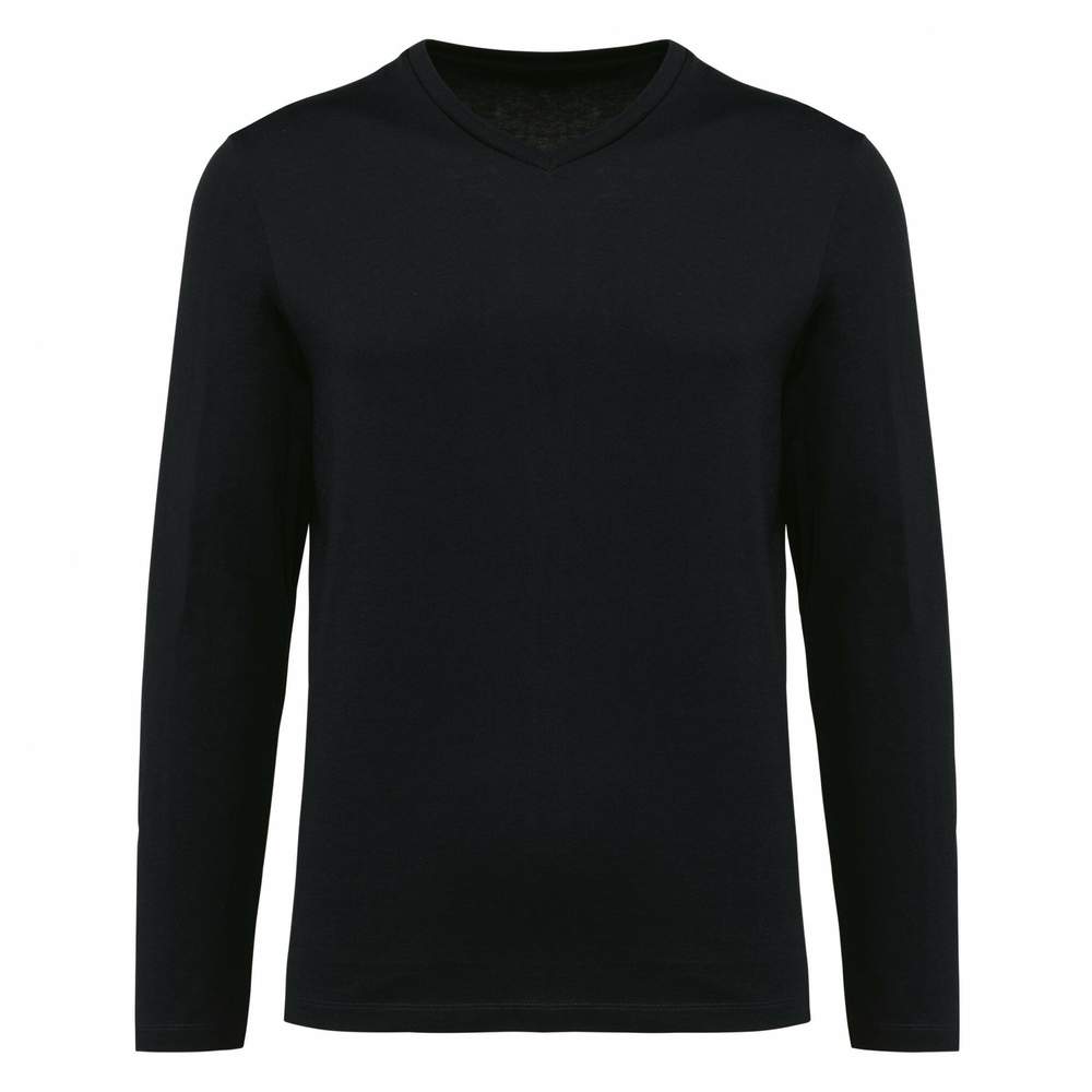T-Shirt Supima® V-Ausschnitt mit langen Ärmeln pk306 - Black